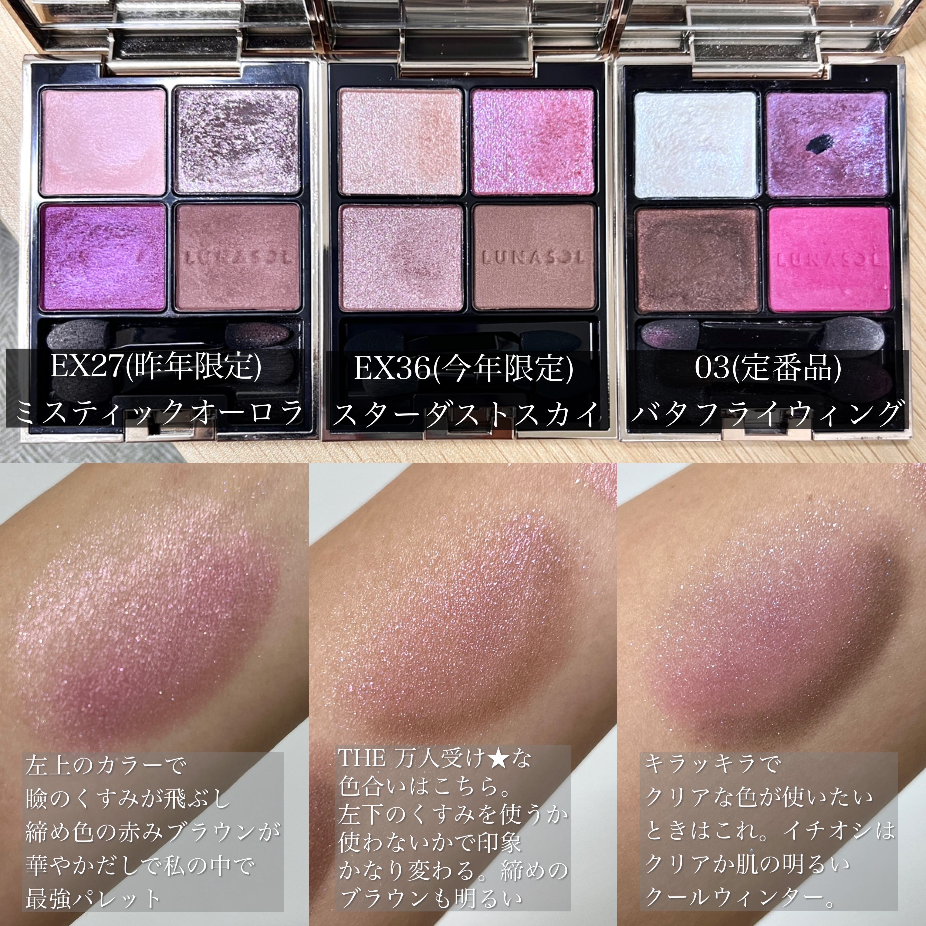 @riho_lip1010☜他のコスメ情報はこちらから.LUNASOL待望の青み定番がキタ🍇💜..8/8発売のLUNASOLの新色アイカラーレーションnを先行発売で購入したので張り切ってレビュー🛍️✨待望のドブルベ歓喜カラーでめちゃくちゃ可愛...