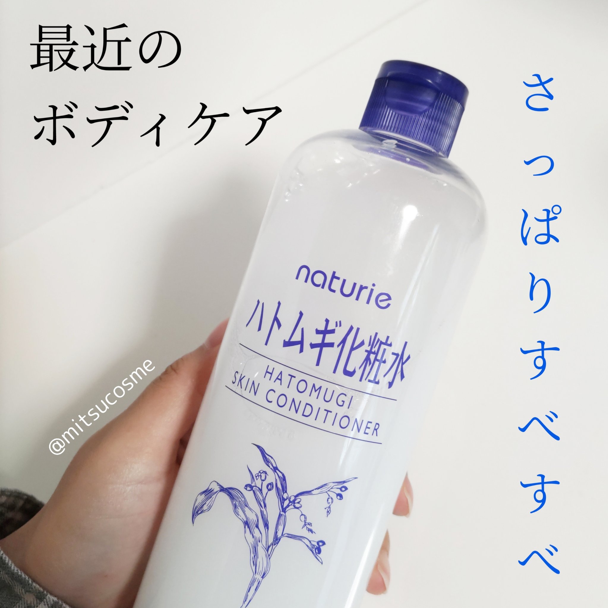 自分の肌質にあっているようで何度もリピートしている大好きなハトムギ化粧水。プチプラなのに大容量なので惜しみなく全身にも使います。 サッパリしていてベタつかないし、良い意味で水みたいな感じです。 大きな容器なので、使いやすいサイズのスプレーボトルに詰め替えて使っています!