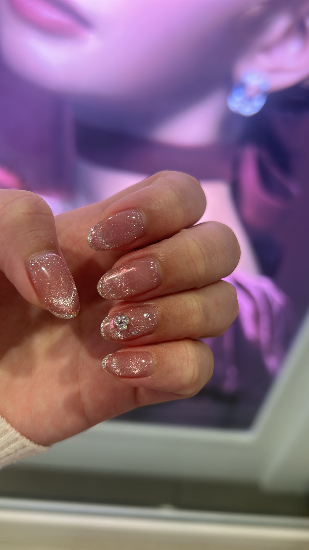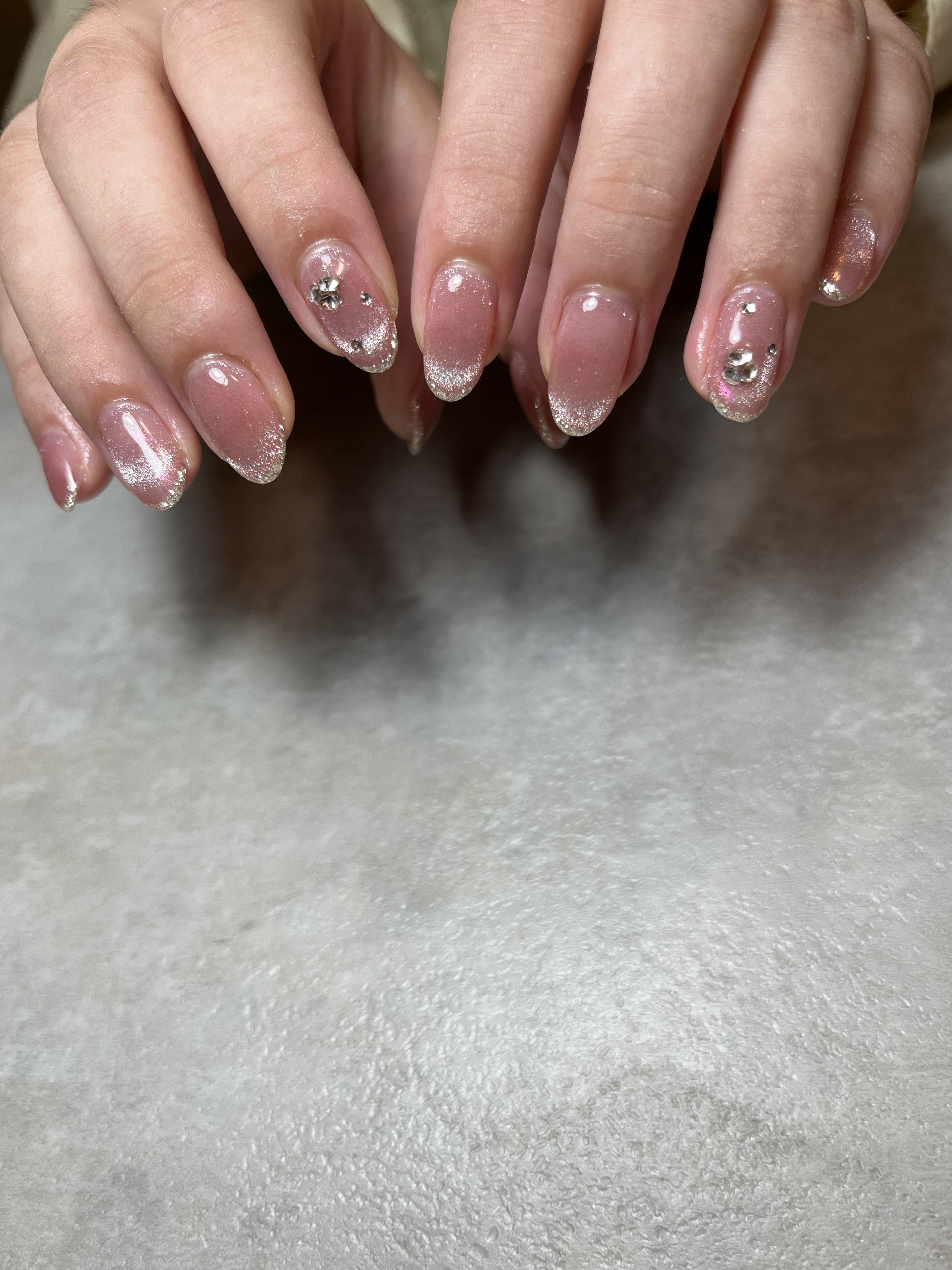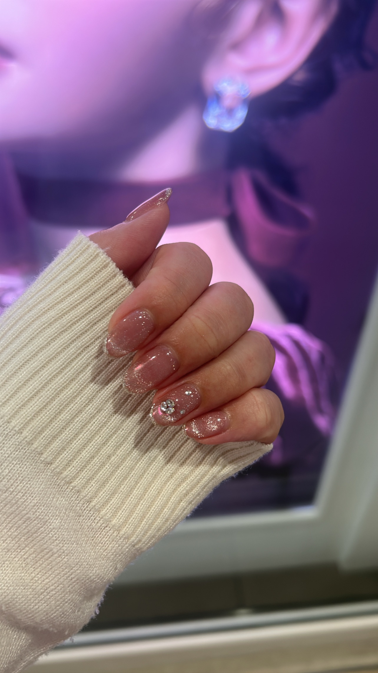\♡3月のネイル💅♡/サロンネイルになります💅✨今回もシンプルめ❣️グレーがかったピンクのようなカラーのラメグラに薬指だけデザインになっています💅細かいラメがキラキラで可愛い〜💕デザインはミラーラインにパールとストーンで綺麗な仕上がりです✨来...