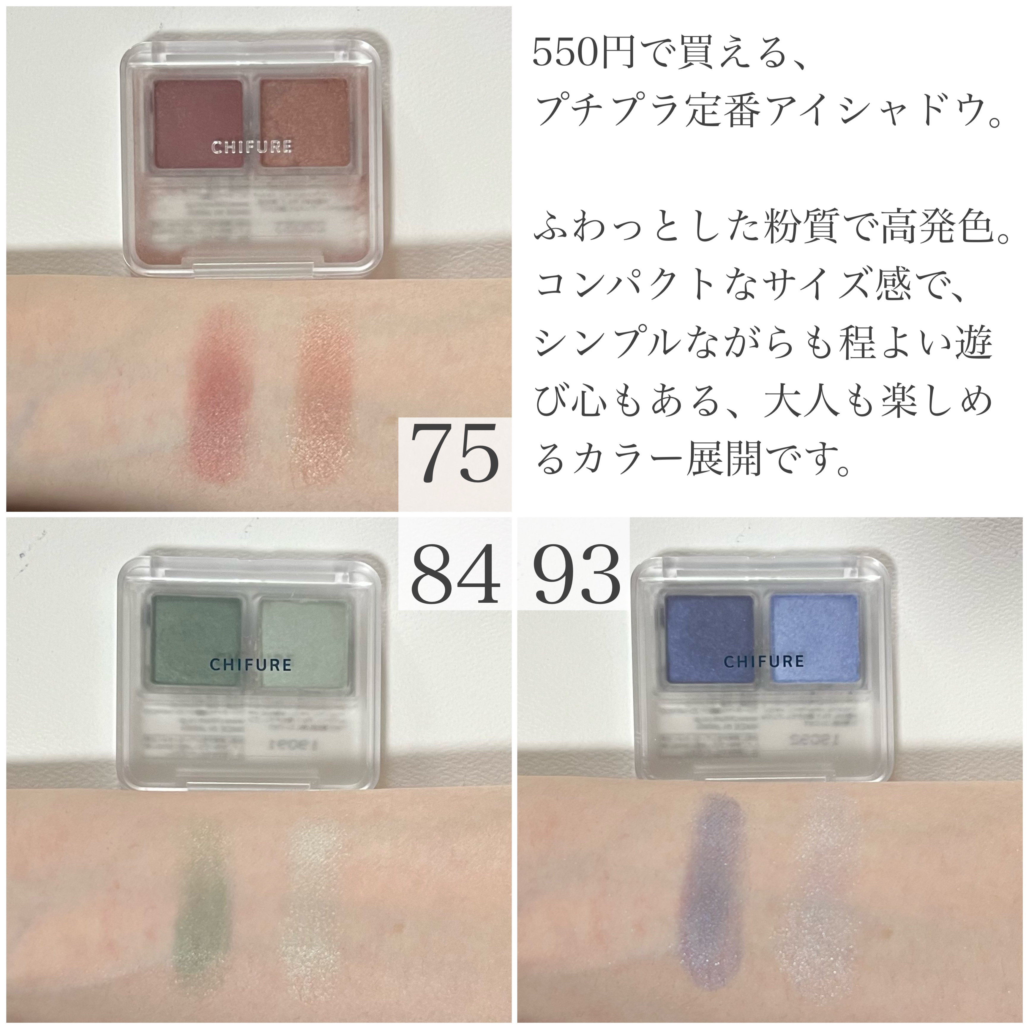 -`̗ちふれ手持ちの7色まとめ̖´-ちふれツインカラーアイシャドウ550円(税込)05ゴールド系13ピンク系35パープル系42オレンジ系75ブラウン系84グリーン系93ブルー系550円で買える万能プチプラアイシャドウ!廃盤になってしまった色も...