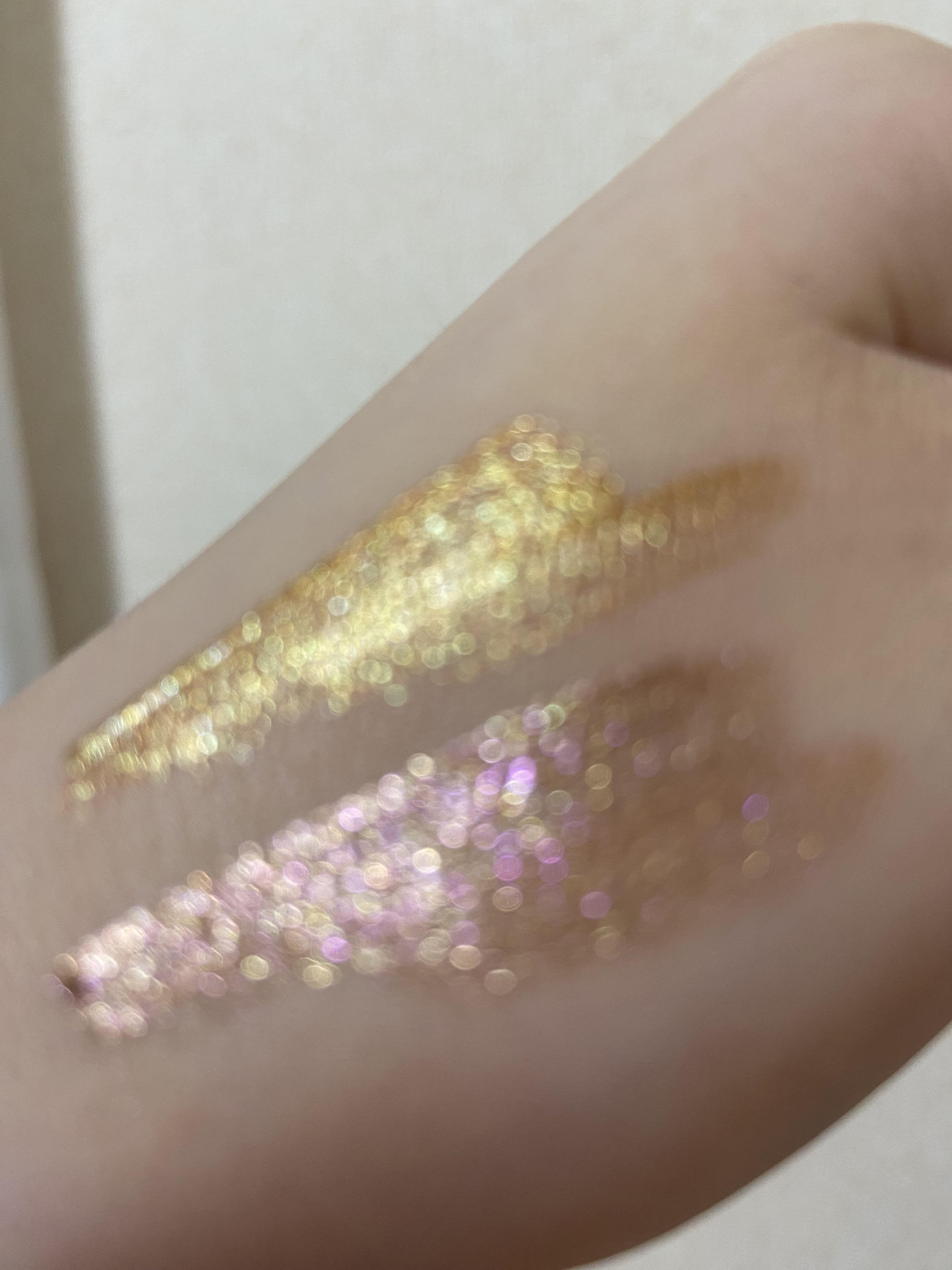 ZEESEAダイヤモンドシリーズ星空リキッドアイシャドウ05夕日の森イエローゴールド系かと思ってましたがグリーンよりの色ピタッと密着し色飛びやラメ落ちもしにくいです涙袋にいれるよりアイホールに、ぽんぽん塗りの方が使いやすかった今の時期だとボル...