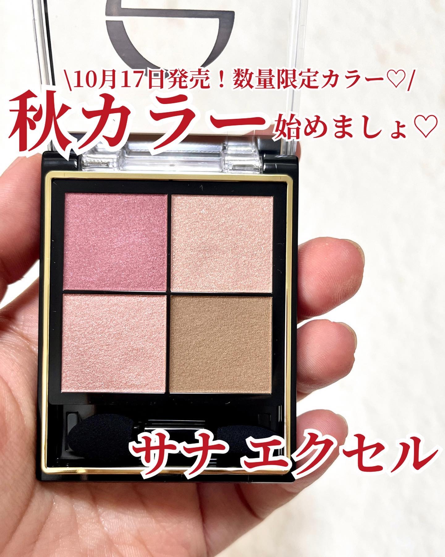 - 1.重ねてもくすまないクリアな発色。ナチュラルに溶け合う絶妙4カラー。 ツヤタイプ(左上・左下カラー):アイホール全体にぼかしたり、目尻へのポイント使いも。 ラメタイプ(右上カラー):アイホール中心や下まぶたにきらめきのアクセント。 マットタイプ(右下カラー):単色で陰影を付けたり、ツヤタイプと重ねてニュアンスをプラス。 2.うっとりするほどリッチな質感で粉飛びしないのに、軽いタッチで伸びて重ねやすいテクスチャー。 3.スクワラン(保湿)配合で目元の乾燥を防ぎます。 [PERFORMANCE] 色と質感の重ね着を楽しむ、ファッション感覚アイシャドウパレット [DESIGN] ・まぶたにひっかからない、なめらかな上質チップ ・薄型コンパクトだからポーチの中でかさばらない [QUALITY] 1.重ねてもくすまないクリアな発色 ナチュラルに溶け合う絶妙4カラー 2.パールの重ね技でまぶたに極上のツヤ感 微細多色 カラーパール 銀コーティング ガラスパール* excel GOLD-MIX処方(金パール配合)* (*右上のシャイニーカラーのみ) 3.うっとりするほどリッチな質感で粉飛び知らず!なのに、軽いタッチで伸びて重ねやすい 4.スクワラン(保湿)配合で目元の乾燥を防ぐ