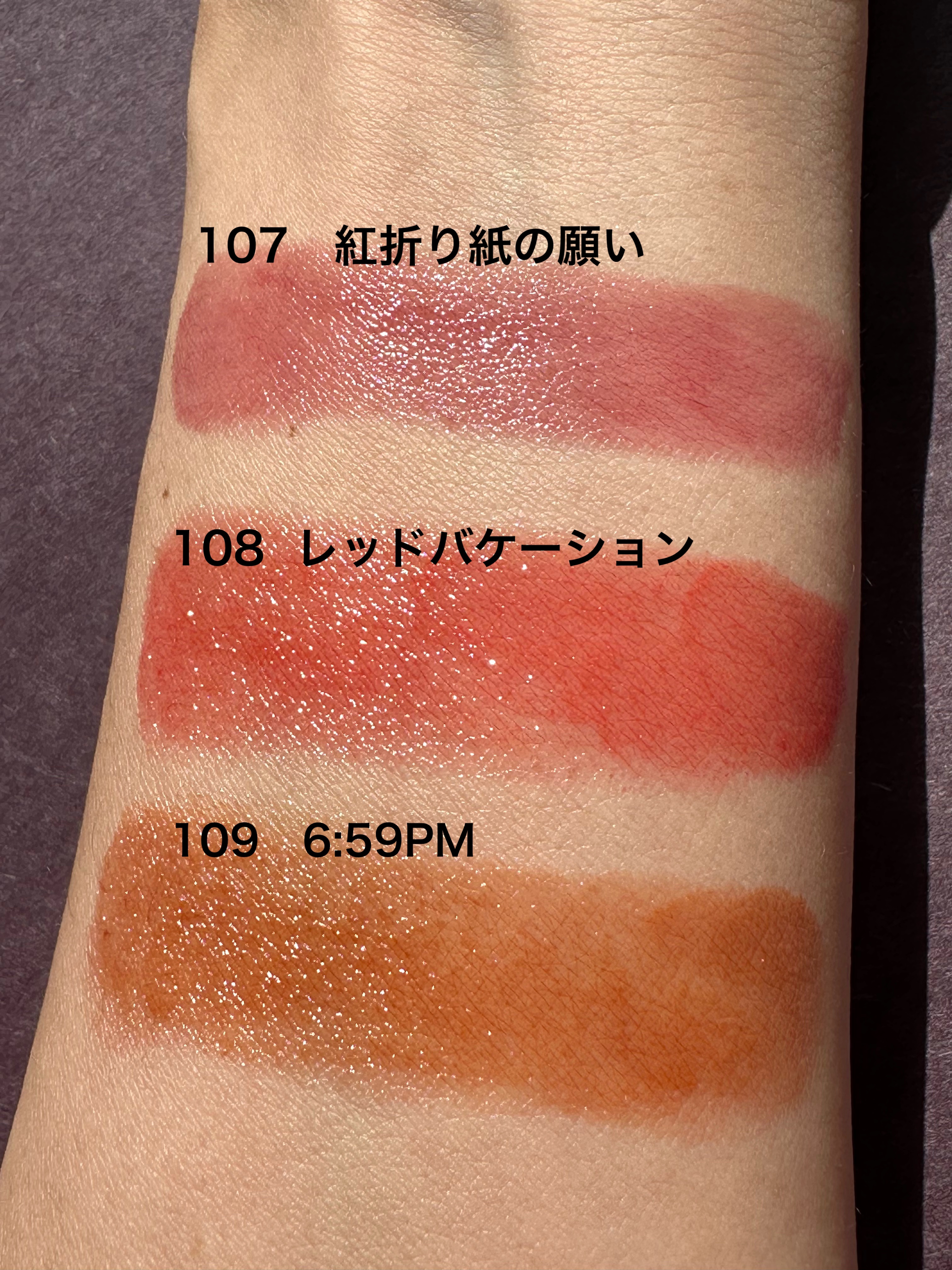 - <01 欲望の塊> テトライソステアリン酸ジペンタエリスリチル、トリ(カプリル酸/カプリン酸)グリセリル、オクチルドデカノール、ラウロイルグルタミン酸ジ(フィトステリル/オクチルドデシル)、ビスアルキル(C16-18)グリセリルウンデシルジメチコン、イソノナン酸イソトリデシル、水添ポリイソブテン、ラウロイルグルタミン酸ジ(オクチルドデシル/フィトステリル/ベヘニル)、パラフィン、合成ワックス、ダイマージリノール酸(フィトステリル/イソステアリル/セチル/ステアリル/ベヘニル)、マイクロクリスタリンワックス、水添マイクロクリスタリンワックス、ヒドロキシステアリン酸エチルヘキシル、トコフェロール、ホホバ種子油、オリーブ果実油、アーモンド油、(エチレン/プロピレン)コポリマー、ポリエチレン、ジメチコン、(+/-)(チタン/酸化チタン)焼結物、マイカ、ラウロイルアスパラギン酸Na、ラウロイルリシン、塩化亜鉛、酸化チタン、酸化鉄、水酸化Al、硫酸Ba、トリイソステアリン酸イソプロピルチタン、酸化スズ、ホウケイ酸(Ca/Al)、合成フルオロフロゴパイト、黄4、黄5、赤104(1)、赤201、赤202 <02 ピンクバナナ> テトライソステアリン酸ジペンタエリスリチル、トリ(カプリル酸/カプリン酸)グリセリル、オクチルドデカノール、ラウロイルグルタミン酸ジ(フィトステリル/オクチルドデシル)、ビスアルキル(C16-18)グリセリルウンデシルジメチコン、イソノナン酸イソトリデシル、水添ポリイソブテン、ラウロイルグルタミン酸ジ(オクチルドデシル/フィトステリル/ベヘニル)、パラフィン、合成ワックス、ダイマージリノール酸(フィトステリル/イソステアリル/セチル/ステアリル/ベヘニル)、マイクロクリスタリンワックス、水添マイクロクリスタリンワックス、ヒドロキシステアリン酸エチルヘキシル、トコフェロール、ホホバ種子油、オリーブ果実油、アーモンド油、(エチレン/プロピレン)コポリマー、ポリエチレン、ジメチコン、(+/-)(チタン/酸化チタン)焼結物、マイカ、ラウロイルアスパラギン酸Na、ラウロイルリシン、塩化亜鉛、酸化チタン、酸化鉄、水酸化Al、硫酸Ba、トリイソステアリン酸イソプロピルチタン、酸化スズ、ホウケイ酸(Ca/Al)、合成フルオロフロゴパイト、黄4、黄5、赤104(1)、赤201、赤202 <03 陽炎> テトライソステアリン酸ジペンタエリスリチル、トリ(カプリル酸/カプリン酸)グリセリル、オクチルドデカノール、ラウロイルグルタミン酸ジ(フィトステリル/オクチルドデシル)、ビスアルキル(C16-18)グリセリルウンデシルジメチコン、イソノナン酸イソトリデシル、水添ポリイソブテン、ラウロイルグルタミン酸ジ(オクチルドデシル/フィトステリル/ベヘニル)、パラフィン、合成ワックス、ダイマージリノール酸(フィトステリル/イソステアリル/セチル/ステアリル/ベヘニル)、マイクロクリスタリンワックス、水添マイクロクリスタリンワックス、ヒドロキシステアリン酸エチルヘキシル、トコフェロール、ホホバ種子油、オリーブ果実油、アーモンド油、(エチレン/プロピレン)コポリマー、ポリエチレン、ジメチコン、(+/-)(チタン/酸化チタン)焼結物、マイカ、ラウロイルアスパラギン酸Na、ラウロイルリシン、塩化亜鉛、酸化チタン、酸化鉄、水酸化Al、硫酸Ba、トリイソステアリン酸イソプロピルチタン、酸化スズ、ホウケイ酸(Ca/Al)、合成フルオロフロゴパイト、黄4、黄5、赤104(1)、赤201、赤202 <04 パンプキンワイン> テトライソステアリン酸ジペンタエリスリチル、トリ(カプリル酸/カプリン酸)グリセリル、オクチルドデカノール、ラウロイルグルタミン酸ジ(フィトステリル/オクチルドデシル)、ビスアルキル(C16-18)グリセリルウンデシルジメチコン、イソノナン酸イソトリデシル、水添ポリイソブテン、ラウロイルグルタミン酸ジ(オクチルドデシル/フィトステリル/ベヘニル)、パラフィン、合成ワックス、ダイマージリノール酸(フィトステリル/イソステアリル/セチル/ステアリル/ベヘニル)、マイクロクリスタリンワックス、水添マイクロクリスタリンワックス、ヒドロキシステアリン酸エチルヘキシル、トコフェロール、ホホバ種子油、オリーブ果実油、アーモンド油、(エチレン/プロピレン)コポリマー、ポリエチレン、ジメチコン、(+/-)(チタン/酸化チタン)焼結物、マイカ、ラウロイルアスパラギン酸Na、ラウロイルリシン、塩化亜鉛、酸化チタン、酸化鉄、水酸化Al、硫酸Ba、トリイソステアリン酸イソプロピルチタン、酸化スズ、ホウケイ酸(Ca/Al)、合成フルオロフロゴパイト、黄4、黄5、赤104(1)、赤201、赤202 <05 ダークフィグ> テトライソステアリン酸ジペンタエリスリチル、トリ(カプリル酸/カプリン酸)グリセリル、オクチルドデカノール、ラウロイルグルタミン酸ジ(フィトステリル/オクチルドデシル)、ビスアルキル(C16-18)グリセリルウンデシルジメチコン、イソノナン酸イソトリデシル、水添ポリイソブテン、ラウロイルグルタミン酸ジ(オクチルドデシル/フィトステリル/ベヘニル)、