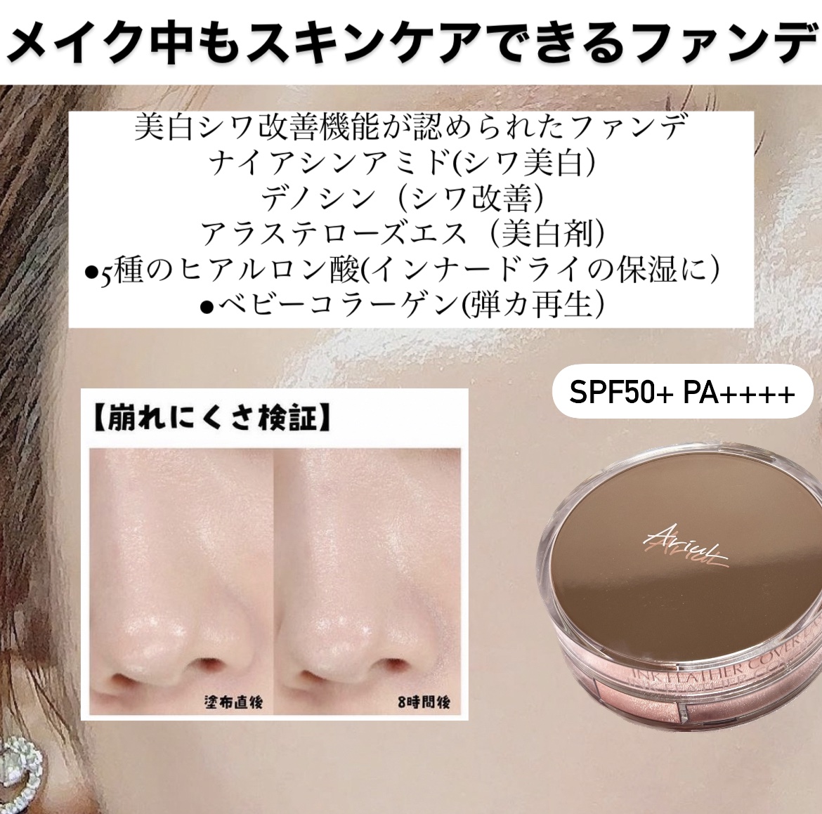 美容皮膚科ナースのてん子さんとの共同開発ファンデ💡 ✔️Ariul アリウル 【インクフェザーカバーラスティングクッション】のご紹介です💁🏻♀️💕 高密着ファンデ🩷 自分の肌のように自然なツヤ肌✨ しっとりしていて崩れにくく、毛穴カバーもしっかり✨ パフはしずく型で可愛いピンク🩷 AriuLのロゴ入りで小鼻や目元も角を使って丁寧に塗れるよ❣️