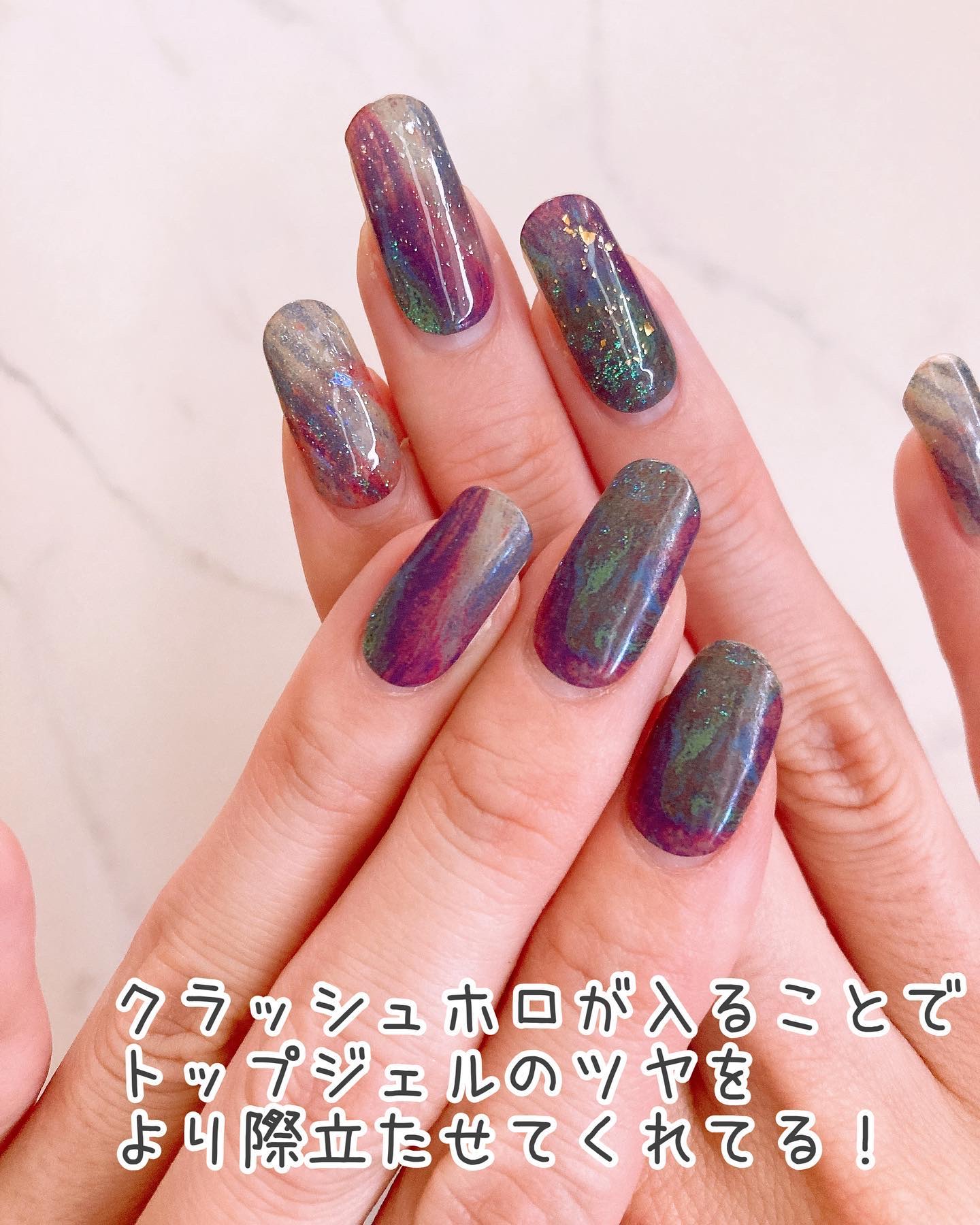 キャンドゥに売ってるホロ入りノンワイプトップジェルに新作登場ー😚! 既存のクラッシュオーロラ、クラッシュゴールド、クラッシュシルバーに加えて大きめのクラッシュホロ入りの2種類が発売されたよ! パルPホロノンワイプトップ各330円(税込) #PR#セルフネイル#ネイル#ジェルネイル #キャンドゥジェルネイル#キャンドゥネイル#ホロノンワイプトップ#プチプラネイル