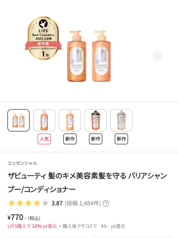 エッセンシャル ザビューティ リペアシャンプー・コンディショナー | 943円〜 |