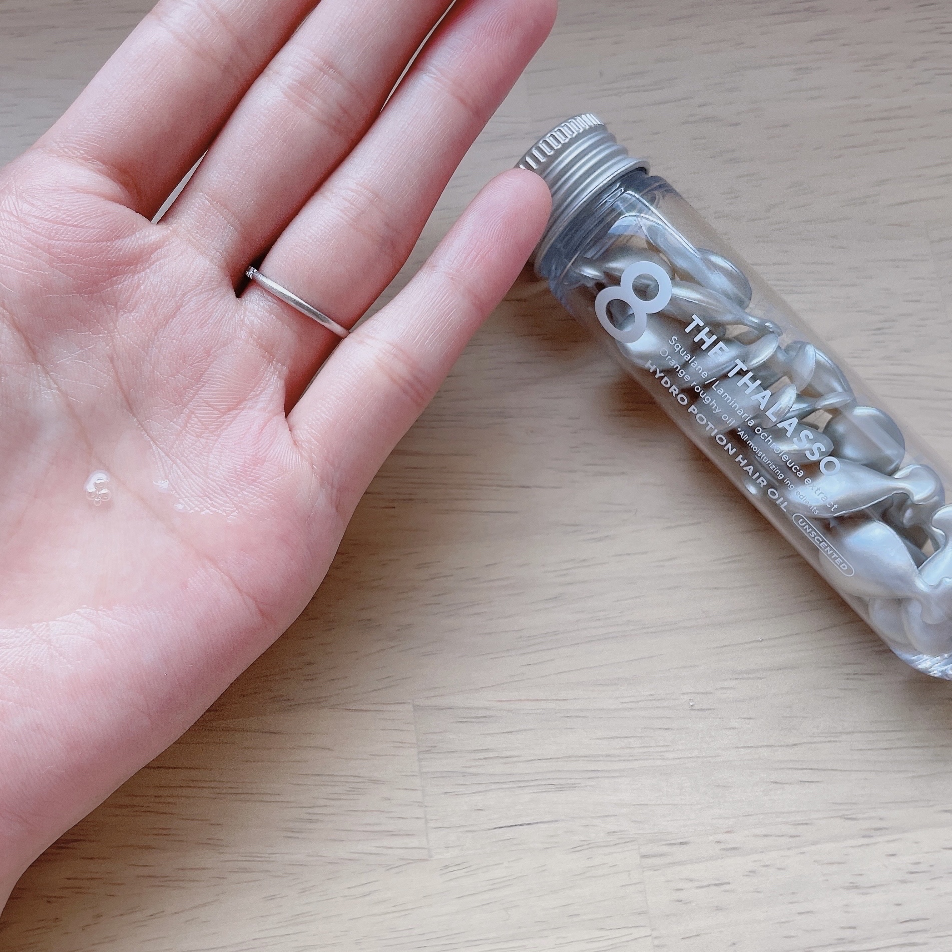 すっかりお気に入りになっているユニセックスで使えるエイトザタラソ ユー。 香りが大好きなのもあってヘアオイルもあったのでこちらもセット購入しておりました👍 パケがカプセル型になってて可愛い💊🩷 もちろんシャントリ同様大好きなムスキーサボンの香り🫶 こちらのオイルは濡れた髪にも、乾いた髪にも両方に使えるものになってます! 熱ダメージに集中ケアしてくれるオイルになっているので、ドライヤー前にもアイロン・コテ使用前も嬉しい✨