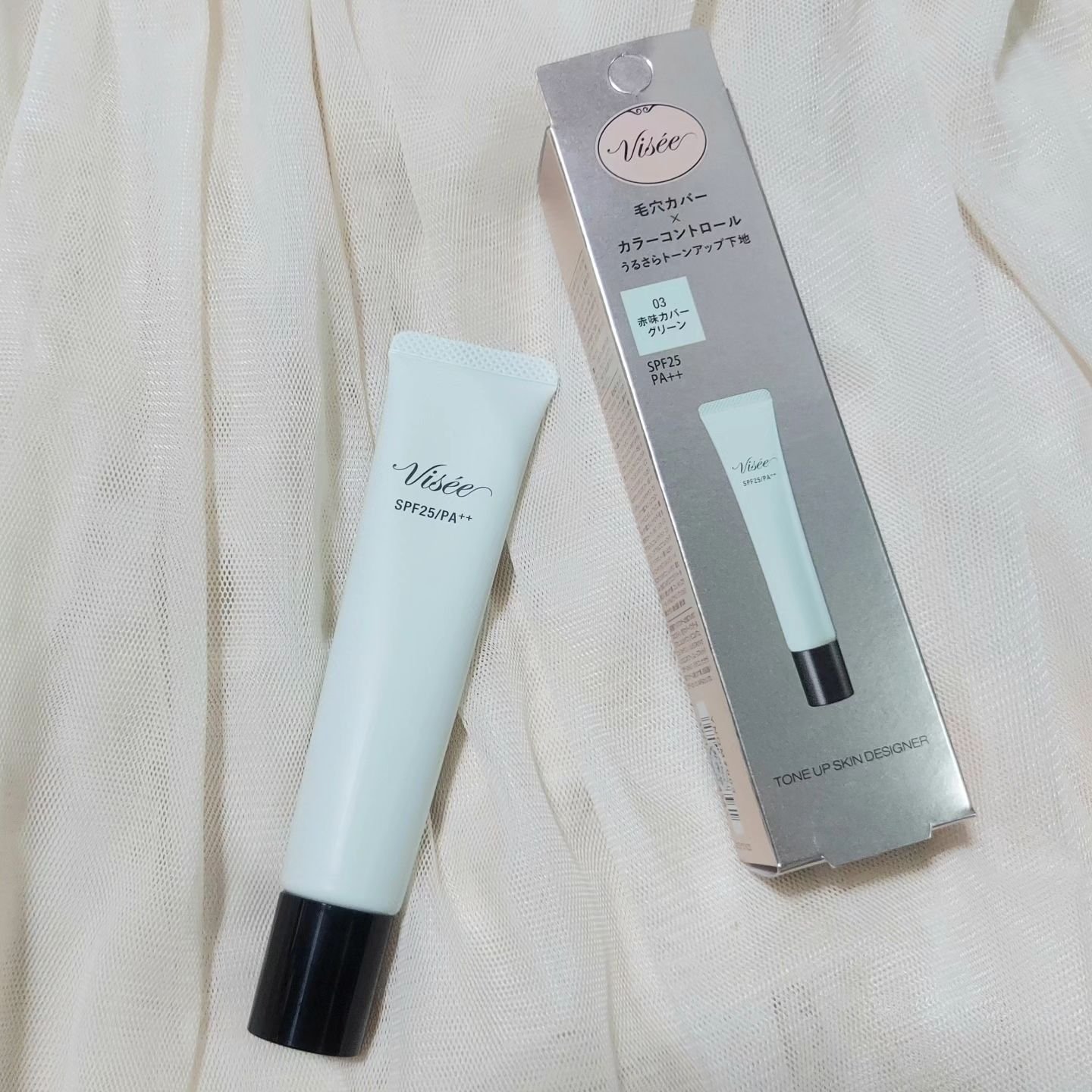 VISSE下地03グリーン頬の赤みや、毛穴が気になるため購入しました🍀以前は下地を塗る時ベタベタするし、塗ってるのに毛穴カバーしてくれないし不満だらけ💦でも、VISSEの下地は塗ったらサラサラ✨️皮脂吸着パウダー」配合してるからテカリ・ベタつ...