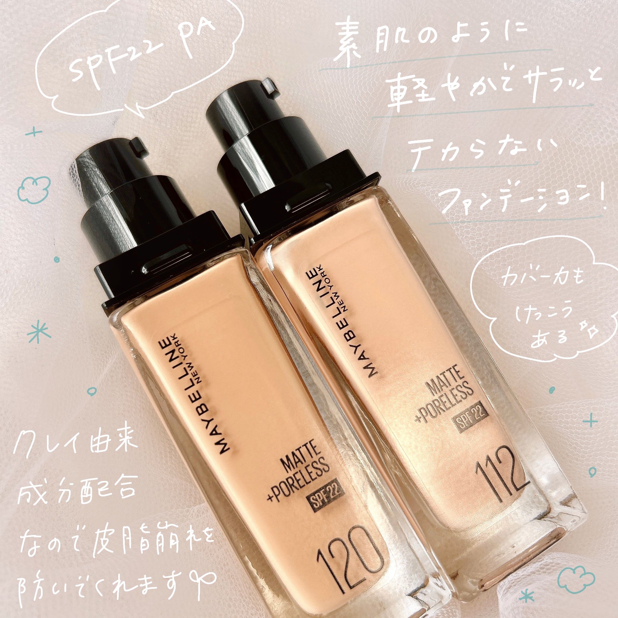 カラバリえぐ!!MAYBELLINENEWYORKフィットミーリキッドファンデーションR112、120ルミマットファンデ人気だけど、、、、フィットミーも負けてないのよ!!軽いつけ心地で肌にぴったり密着し、崩れにくいのがポイント!!毛穴やくすみ...