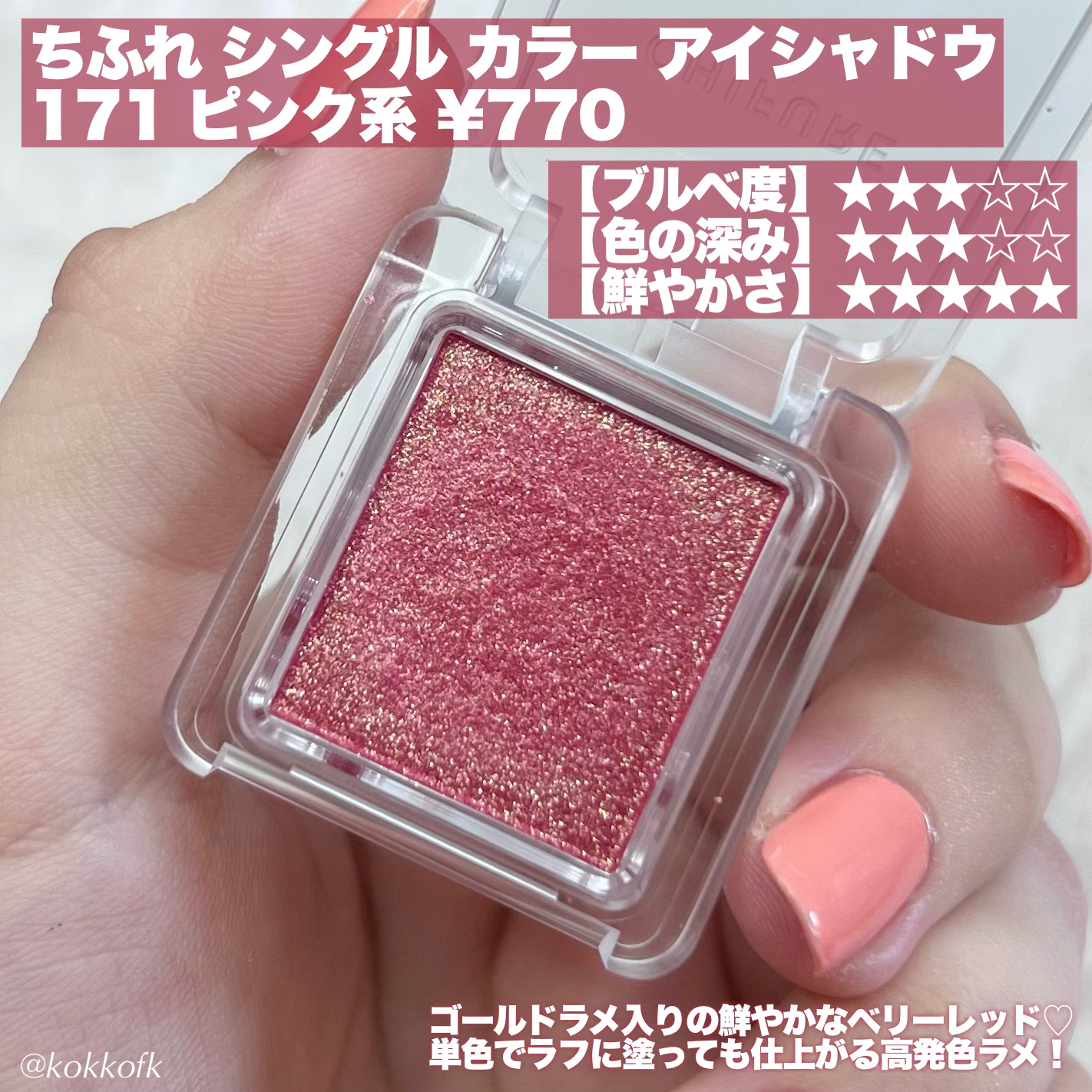 | 単色アイシャドウランキング第9位 | キラキラとまたラメが綺麗ですね きめ細かくしっとり♡ | 詳細を見る | |