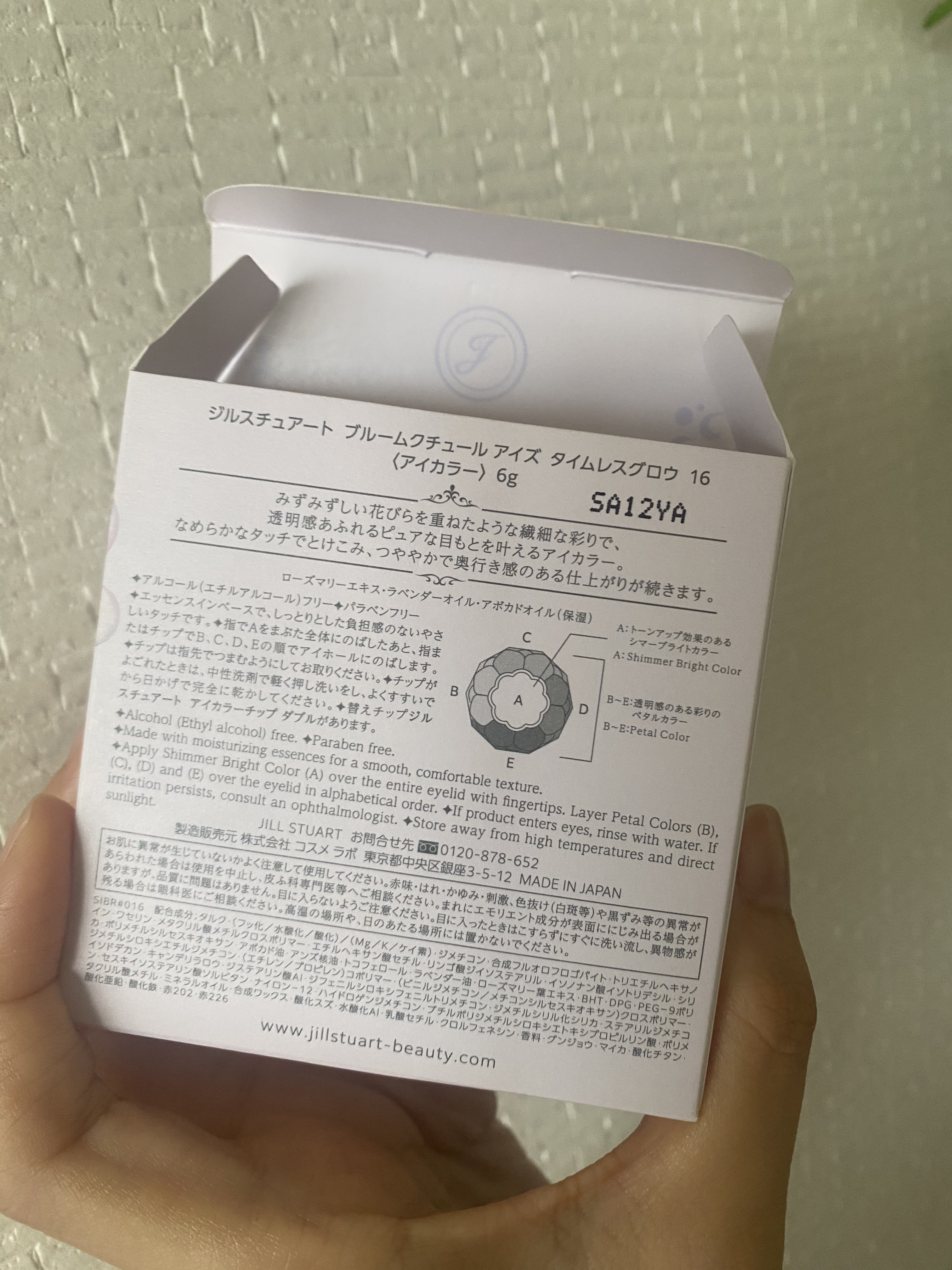 - <01 jasmine latte> (フッ化/水酸化/酸化)/(Mg/K/ケイ素)、タルク、ジメチコン、合成金雲母、トリエチルヘキサノイン、エチルヘキサン酸セチル、リンゴ酸ジイソステアリル、イソノナン酸イソトリデシル、ナイロン-12、ワセリン、シリカ、メタクリル酸メチルクロスポリマー、ポリメチルシルセスキオキサン、アボカド油、アンズ核油、トコフェロール、ラベンダー油、ローズマリー葉エキス、BG、BHT、DPG、PEG-9ポリジメチルシロキシエチルジメチコン、PVP、(エチレン/プロピレン)コポリマー、(ビニルジメチコン/メチコンシルセスキオキサン)クロスポリマー、イソドデカン、キャンデリラロウ、ジステアリン酸Al、ジフェニルシロキシフェニルトリメチコン、ジメチルシリル化シリカ、ステアリルジメチコン、セスキイソステアリン酸ソルビタン、ハイドロゲンジメチコン、ブチルポリジメチルシロキシエトキシプロピルリン酸、ホウケイ酸(Ca/Al)、ポリメタクリル酸メチル、ミネラルオイル、合成ワックス、酸化スズ、水酸化Al、乳酸セチル、香料、グンジョウ、マイカ、酸化チタン、酸化亜鉛、酸化鉄、黄4 <02 tender poppy> タルク、ジメチコン、トリエチルヘキサノイン、合成金雲母、(フッ化/水酸化/酸化)/(Mg/K/ケイ素)、エチルヘキサン酸セチル、リンゴ酸ジイソステアリル、ワセリン、イソノナン酸イソトリデシル、シリカ、セスキイソステアリン酸ソルビタン、アボカド油、アンズ核油、トコフェロール、ラベンダー油、ローズマリー葉エキス、BG、BHT、DPG、PEG-9ポリジメチルシロキシエチルジメチコン、PVP、(エチレン/プロピレン)コポリマー、(ビニルジメチコン/メチコンシルセスキオキサン)クロスポリマー、イソドデカン、キャンデリラロウ、ジステアリン酸Al、ジフェニルシロキシフェニルトリメチコン、ジメチルシリル化シリカ、ステアリルジメチコン、ナイロン-12、ハイドロゲンジメチコン、ブチルポリジメチルシロキシエトキシプロピルリン酸、ホウケイ酸(Ca/Al)、ポリメタクリル酸メチル、ポリメチルシルセスキオキサン、ミネラルオイル、メタクリル酸メチルクロスポリマー、合成ワックス、酸化スズ、水酸化Al、乳酸セチル、香料、グンジョウ、マイカ、酸化チタン、酸化亜鉛、酸化鉄、硫酸Ba、黄4 <03 peony harmony> (フッ化/水酸化/酸化)/(Mg/K/ケイ素)、タルク、ジメチコン、合成金雲母、トリエチルヘキサノイン、エチルヘキサン酸セチル、イソノナン酸イソトリデシル、リンゴ酸ジイソステアリル、ナイロン-12、ワセリン、シリカ、メタクリル酸メチルクロスポリマー、ポリメチルシルセスキオキサン、アボカド油、アンズ核油、トコフェロール、ラベンダー油、ローズマリー葉エキス、BG、BHT、DPG、PEG-9ポリジメチルシロキシエチルジメチコン、PVP、(エチレン/プロピレン)コポリマー、(ビニルジメチコン/メチコンシルセスキオキサン)クロスポリマー、イソドデカン、キャンデリラロウ、ジステアリン酸Al、ジフェニルシロキシフェニルトリメチコン、ジメチルシリル化シリカ、ステアリルジメチコン、セスキイソステアリン酸ソルビタン、ハイドロゲンジメチコン、ブチルポリジメチルシロキシエトキシプロピルリン酸、ホウケイ酸(Ca/Al)、ポリメタクリル酸メチル、ミネラルオイル、合成ワックス、酸化スズ、水酸化Al、乳酸セチル、クロルフェネシン、香料、カルミン、グンジョウ、マイカ、酸化チタン、酸化亜鉛、酸化鉄、黄4 <04 sunlit ranunculus > タルク、(フッ化/水酸化/酸化)/(Mg/K/ケイ素)、ジメチコン、合成金雲母、トリエチルヘキサノイン、メタクリル酸メチルクロスポリマー、ワセリン、エチルヘキサン酸セチル、リンゴ酸ジイソステアリル、イソノナン酸イソトリデシル、シリカ、ホウケイ酸(Ca/Na)、ホウケイ酸(Ca/Al)、ポリメチルシルセスキオキサン、アボカド油、アンズ核油、トコフェロール、ラベンダー油、ローズマリー葉エキス、BG、BHT、DPG、PEG-9ポリジメチルシロキシエチルジメチコン、PVP、(エチレン/プロピレン)コポリマー、(ビニルジメチコン/メチコンシルセスキオキサン)クロスポリマー、イソドデカン、キャンデリラロウ、ジステアリン酸Al、ジフェニルシロキシフェニルトリメチコン、ジメチルシリル化シリカ、ステアリルジメチコン、セスキイソステアリン酸ソルビタン、ナイロン-12、ハイドロゲンジメチコン、ブチルポリジメチルシロキシエトキシプロピルリン酸、ポリメタクリル酸メチル、ミネラルオイル、合成フルオロフロゴパイト、合成ワックス、酸化スズ、水酸化Al、乳酸セチル、クロルフェネシン、香料、カルミン、グンジョウ、コンジョウ、マイカ、酸化チタン、酸化亜鉛、酸化鉄 <05 dahlia blush> タルク、(フッ化/水酸化/酸化)/(Mg/K/ケイ素)、ジメチコン、トリエチルヘキサノイン、合成金雲母、ワセリン、エチルヘキサン酸セチル、リンゴ酸ジイソステアリル、イソノナン酸イソトリデシル、メタクリル酸メチルクロスポリマー、シリカ、ナイロン-12、ホウケイ酸(Ca/Al)、PET、ポリメチルシ