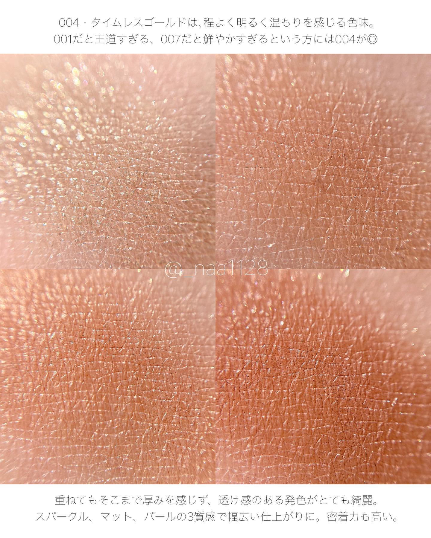 - <001 Cashmere Dream> タルク、ホウケイ酸(Ca/Al)、⽔添ポリイソブテン、合成フルオロフロゴパイト、ミネラル オイル、リンゴ酸ジイソステアリル、PET、メタクリル酸メチルクロスポリマー、トリエチル ヘキサノイン、ワセリン、トコフェロール、(トリフルオロプロピルジメチコン/トリフルオ ロプロピルジビニルジメチコン)クロスポリマー、(ビニルジメチコン/ラウリルジメチコン) クロスポリマー、イソドデカン、エチルヘキサン酸セチル、シリカ、ジメチコン、セスキイソ ステアリン酸ソルビタン、セスキステアリン酸ソルビタン、トリエトキシカプリリルシラン、トリフルオロプロピルシクロテトラシロキサン、トリフルオロプロピルシクロペンタシロキサ ン、ヘキサ(ヒドロキシステアリン酸/ステアリン酸/ロジン酸)ジペンタエリスリチル、酸 化スズ、⽔酸化Al、クロルフェネシン、カルミン、グンジョウ、マイカ、酸化チタン、酸化亜 鉛、酸化鉄、硫酸Ba、⻩4 <002 Everlasting Lilac> タルク、合成フルオロフロゴパイト、⽔添ポリイソブテン、ミネラルオイル、リンゴ酸ジイソ ステアリル、ホウケイ酸(Ca/Al)、PET、トリエチルヘキサノイン、ワセリン、メタクリル 酸メチルクロスポリマー、トコフェロール、(トリフルオロプロピルジメチコン/トリフルオ ロプロピルジビニルジメチコン)クロスポリマー、(ビニルジメチコン/ラウリルジメチコン) クロスポリマー、イソドデカン、エチルヘキサン酸セチル、シリカ、ジメチコン、セスキイソ ステアリン酸ソルビタン、セスキステアリン酸ソルビタン、トリフルオロプロピルシクロテト ラシロキサン、トリフルオロプロピルシクロペンタシロキサン、ヘキサ(ヒドロキシステアリ ン酸/ステアリン酸/ロジン酸)ジペンタエリスリチル、酸化スズ、⽔酸化Al、クロルフェネ シン、カルミン、グンジョウ、マイカ、酸化チタン、酸化亜鉛、酸化鉄、硫酸Ba <003 Marriage Vow> タルク、⽔添ポリイソブテン、合成フルオロフロゴパイト、ホウケイ酸(Ca/Al)、ミネラル オイル、リンゴ酸ジイソステアリル、メタクリル酸メチルクロスポリマー、トリエチルヘキサ ノイン、PET、ワセリン、トコフェロール、(トリフルオロプロピルジメチコン/トリフルオ ロプロピルジビニルジメチコン)クロスポリマー、(ビニルジメチコン/ラウリルジメチコン) クロスポリマー、イソドデカン、エチルヘキサン酸セチル、シリカ、ジメチコン、セスキイソ ステアリン酸ソルビタン、セスキステアリン酸ソルビタン、トリエトキシカプリリルシラン、トリフルオロプロピルシクロテトラシロキサン、トリフルオロプロピルシクロペンタシロキサ ン、ヘキサ(ヒドロキシステアリン酸/ステアリン酸/ロジン酸)ジペンタエリスリチル、酸 化スズ、⽔酸化Al、カルミン、グンジョウ、マイカ、酸化チタン、酸化亜鉛、酸化鉄、硫酸 Ba、⻩4 <004 Timeless Gold> タルク、合成フルオロフロゴパイト、⽔添ポリイソブテン、ミネラルオイル、リンゴ酸ジイソ ステアリル、ホウケイ酸(Ca/Al)、PET、トリエチルヘキサノイン、メタクリル酸メチルク ロスポリマー、ワセリン、トコフェロール、(トリフルオロプロピルジメチコン/トリフルオ ロプロピルジビニルジメチコン)クロスポリマー、(ビニルジメチコン/ラウリルジメチコン) クロスポリマー、イソドデカン、エチルヘキサン酸セチル、シリカ、ジメチコン、セスキイソ ステアリン酸ソルビタン、セスキステアリン酸ソルビタン、トリフルオロプロピルシクロテト ラシロキサン、トリフルオロプロピルシクロペンタシロキサン、ヘキサ(ヒドロキシステアリ ン酸/ステアリン酸/ロジン酸)ジペンタエリスリチル、ラウリン酸亜鉛、酸化スズ、⽔酸化 Al、クロルフェネシン、グンジョウ、マイカ、酸化チタン、酸化亜鉛、酸化鉄、硫酸Ba <005 Vintage Tutu> タルク、合成フルオロフロゴパイト、⽔添ポリイソブテン、ミネラルオイル、ホウケイ酸(Ca /Al)、リンゴ酸ジイソステアリル、トリエチルヘキサノイン、メタクリル酸メチルクロスポ リマー、ワセリン、PET、トコフェロール、(トリフルオロプロピルジメチコン/トリフルオ ロプロピルジビニルジメチコン)クロスポリマー、(ビニルジメチコン/ラウリルジメチコン) クロスポリマー、イソドデカン、エチルヘキサン酸セチル、シリカ、ジメチコン、セスキイソ ステアリン酸ソルビタン、セスキステアリン酸ソルビタン、トリフルオロプロピルシクロテト ラシロキサン、トリフルオロプロピルシクロペンタシロキサン、ヘキサ(ヒドロキシステアリ ン酸/ステアリン酸/ロジン酸)ジペンタエリスリチル、酸化スズ、⽔酸化Al、クロルフェネ シン、カルミン、グンジョウ、マイカ、酸化チタン、酸化亜鉛、酸化鉄、硫酸Ba、⻩4 <006 First Romance> タルク、合成フルオロフロゴパイト、⽔添ポリイソブテン、ミネラルオイル、リンゴ酸ジイソ ステアリル、ホウケイ酸(Ca/Al)、メタクリル酸メチルクロスポリマー、トリエチルヘキサ ノイン、ワセリン、PET、トコフェロール、(ト