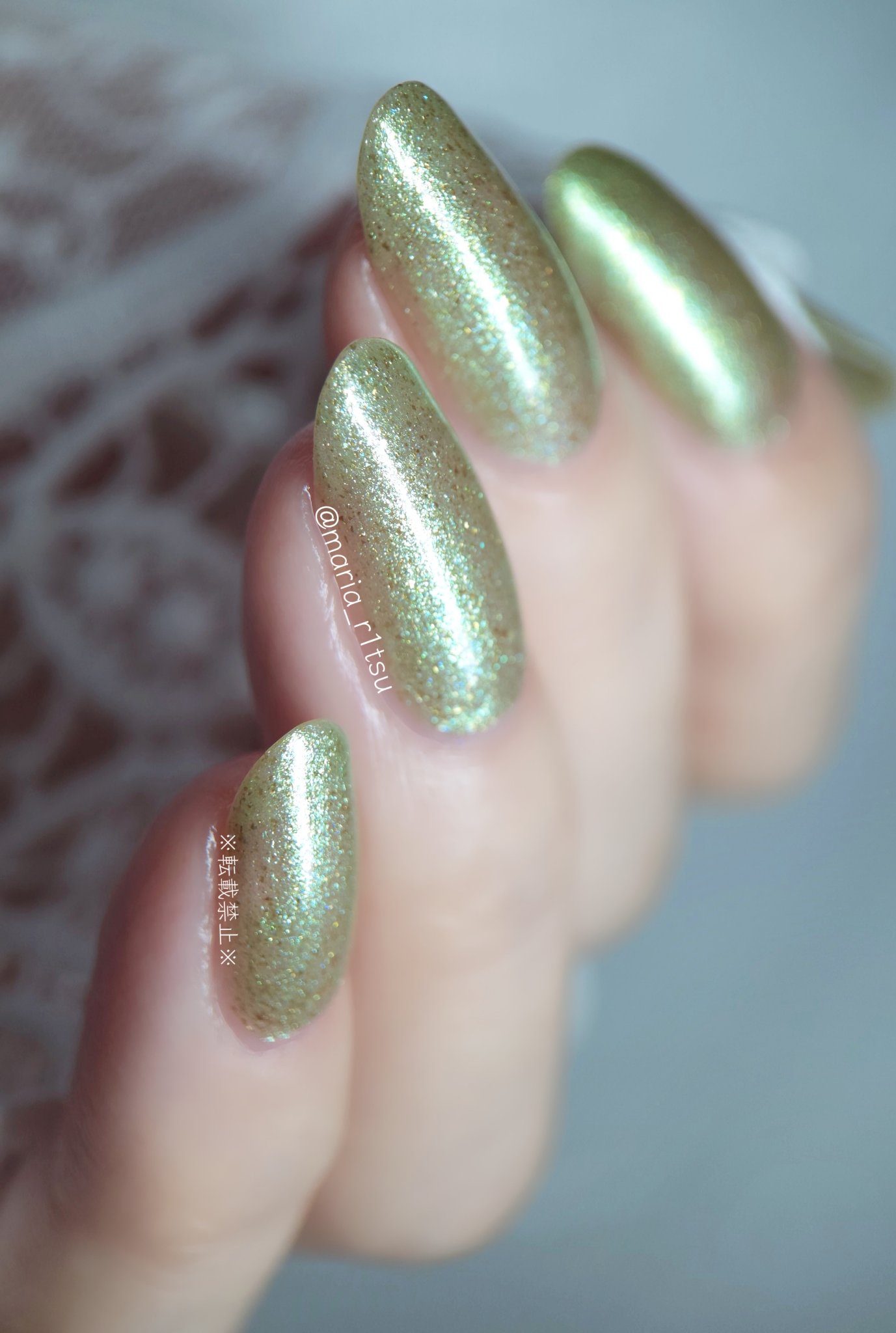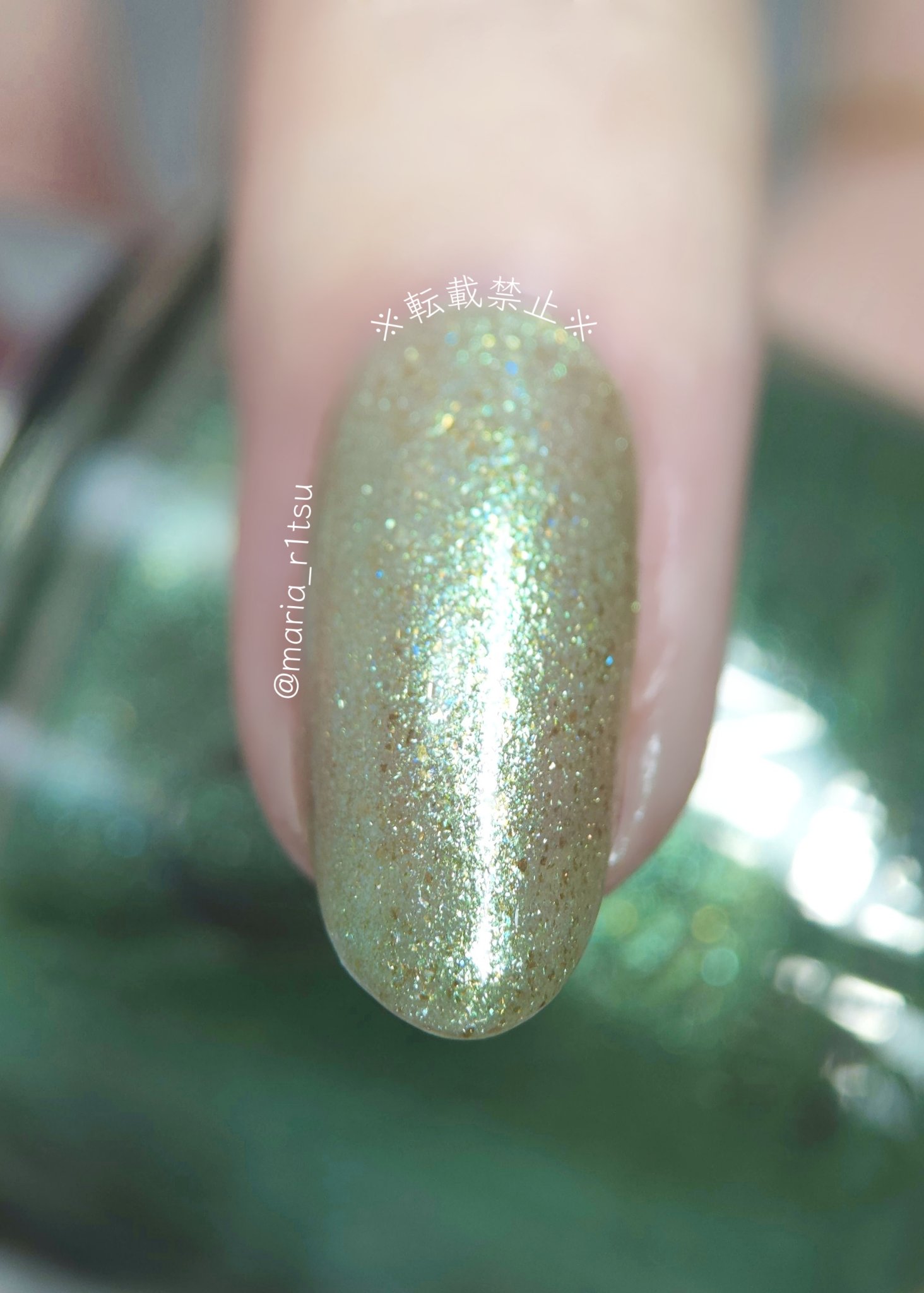 こちらは春コレの第1弾で、シアーなベースカラーにラメが美しいネイルポリッシュです。 細筆なのですが程よいコシがあるので、ボトル縁で扱いて広げると綺麗に塗れます。 シアーホワイトにライトグリーンのラメがたっぷり入っていてとても美しいです。 シアーなピンクブラウンに青ラメがチラチラして綺麗な色です。 発色がシアーだからか、重たくならず上品に仕上がります。 澄んだダークブラウンに多色ラメが時折きらりと光ります。 ほんのりと華やかさを添える多色ラメと、シアーな色味のおかげでダークブラウンでも重たくなりすぎません。