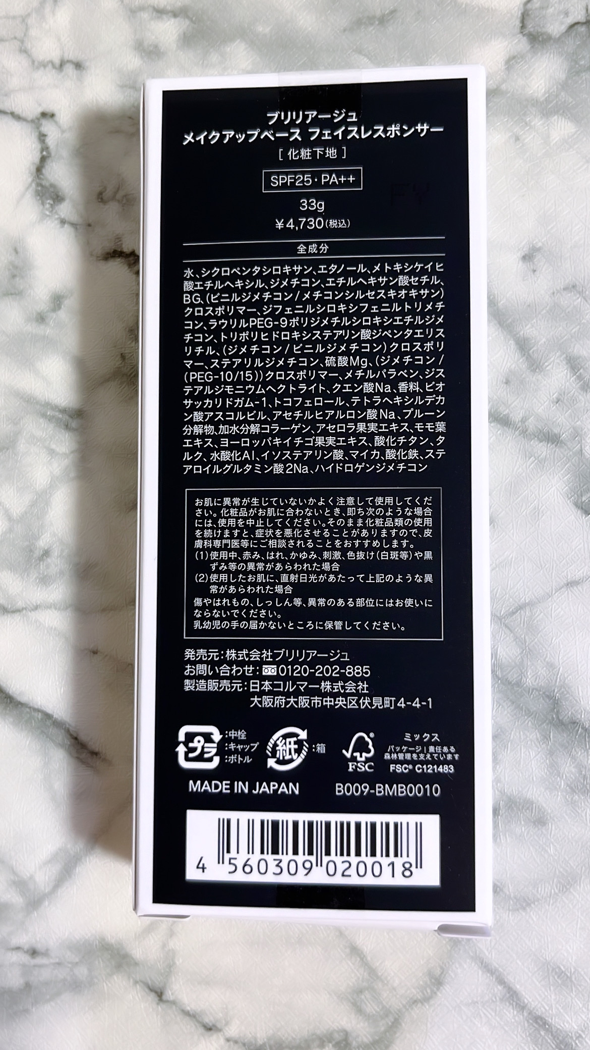 ブリリアージュ メイクアップベース フェイスレスポンサー | 4,950円 |