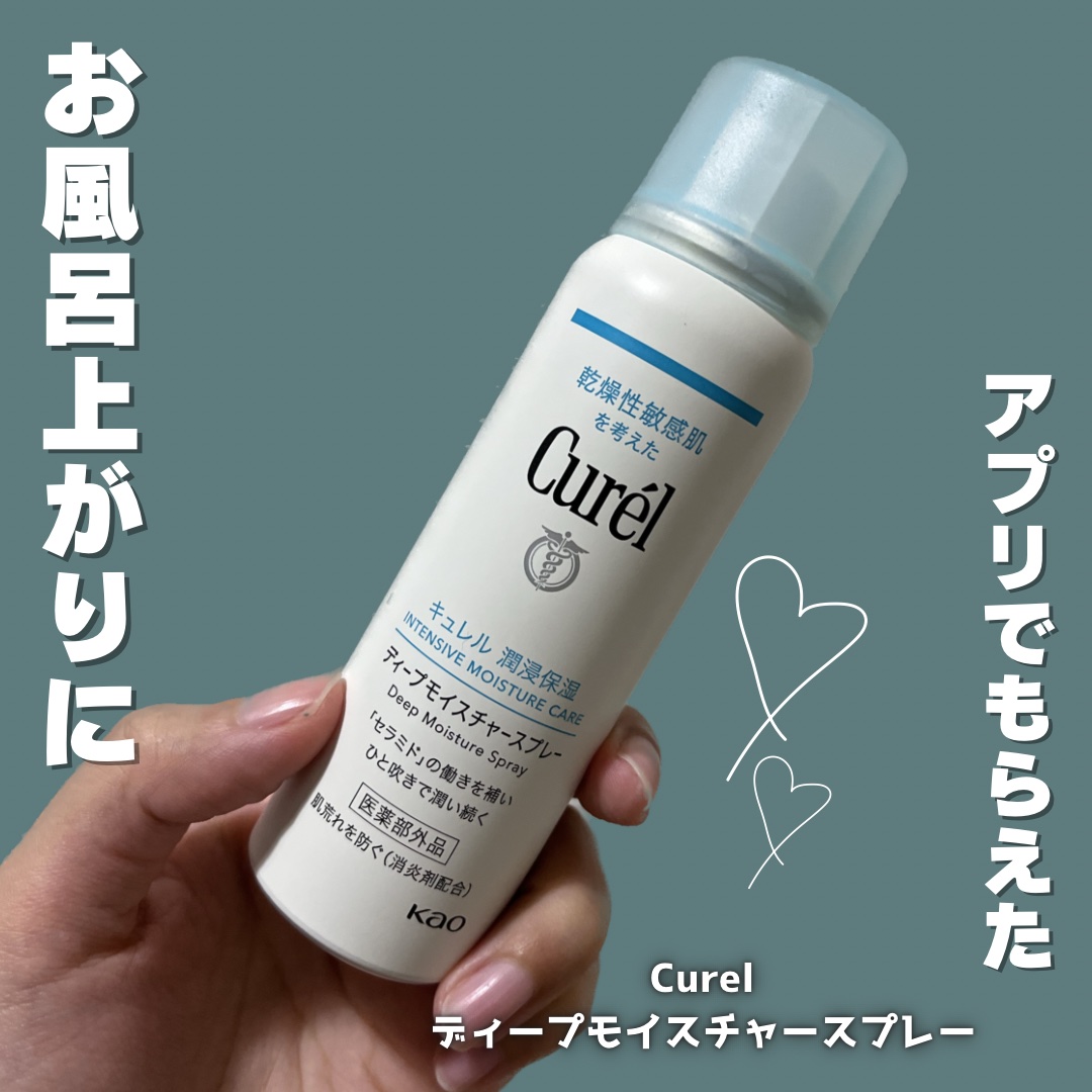 お風呂上りにシューっとするだけでお肌がしっとり潤う🙆♀️ セラミドケアと言えばなキュレル製品で保湿効果は抜群! スキンケア前のとりあえず保湿に使いやすい🥹 さらに有効成分の消炎剤配合で肌荒れを防ぐ効果も!!💡 広範囲に、微細なミストが広がるのでひと吹きでとりあえず保湿が完了! 吹きかけたときから保湿感があります🫢✨✨