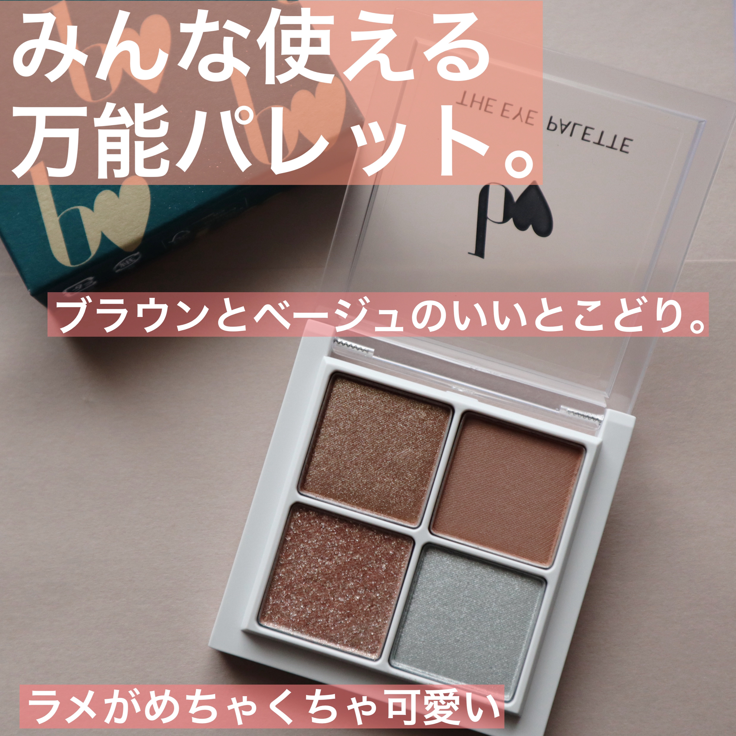発色はナチュラルでとても可愛いです このお値段でこのクオリティはすごいと思いました。 🥜01ナッツベージュザ・ベージュって感じのカラー締め色を加えることで立体感ある目元になります。右上がパール左下がマットしめ色はほんのり艶感のあるマット。個人的にはマットが可愛いです 02ロージーベージュブルベ向けかなと思ったけどイエベでも使えそうピンクーって感じはないので誰でも使いやすいです! 📎おすすめの使い方📎ブラシで塗る際は、柔らかめのブラシをお勧めします!ふわりと発色してくれるので可愛いです。 硬いのだとポロポロ出るし発色もイマイチ。 あと、左上のラメを使わないー!このラメがあまり綺麗に見せてくれないのでラメなしでも可愛いのでぜひ!! 使い方を工夫すれば全然使えます!!