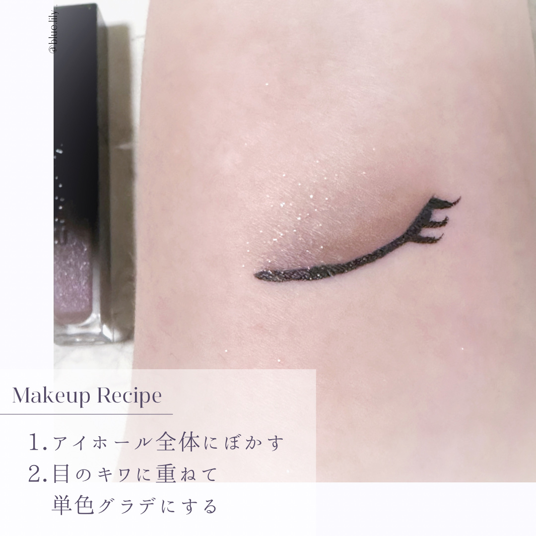 上質なシルキーな粉感もさすがのゲランで好みです。瞼にしっかりと密着して深みのある発色を叶えてくれます。 セミマットなベージュやシアーブラックの上にシルバーパールやサテンの艶めきのあるモーブグレージュを重ねるとなんとも美しいツヤが瞼を彩ってくれます 一見パールシルバーが派手に見えますがブラシでふわりと乗せることで月明かりを宿したような上品な艶感を添えてくれます