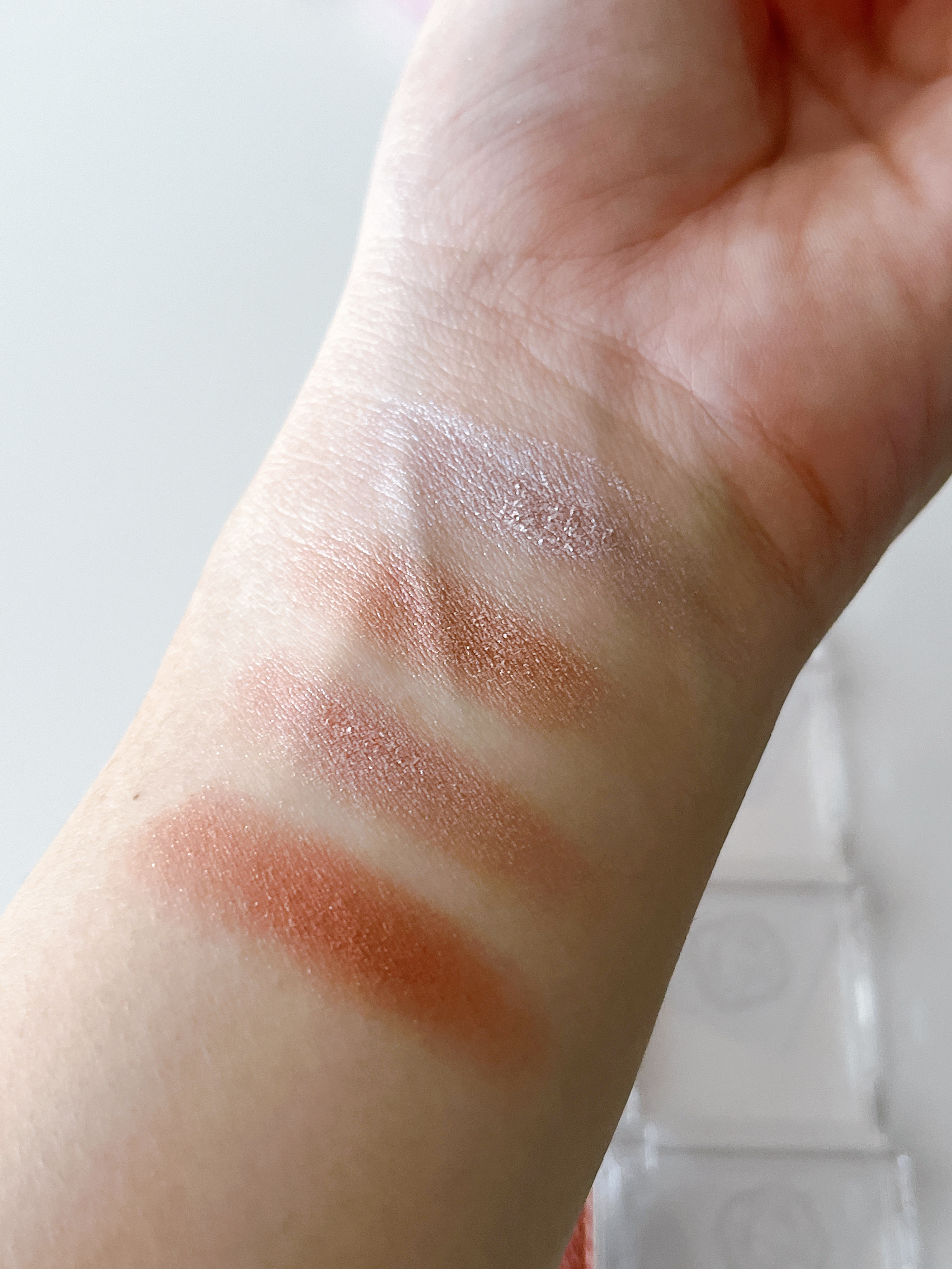 ホワイト?シルバー?系の上品な透明感のある輝き✨ ギラギラしすぎにはならないし、ちょうどいい❤️真っ白ではないので、ブルベイエベ問わず、メイクのカラー問わず使えそう╰(*´︶`*)╯♡ 指でつけたらしっかりつくので、アイシャドウとしても使える✨柔らかいブラシでつけたらほんのりキラキラ🌟