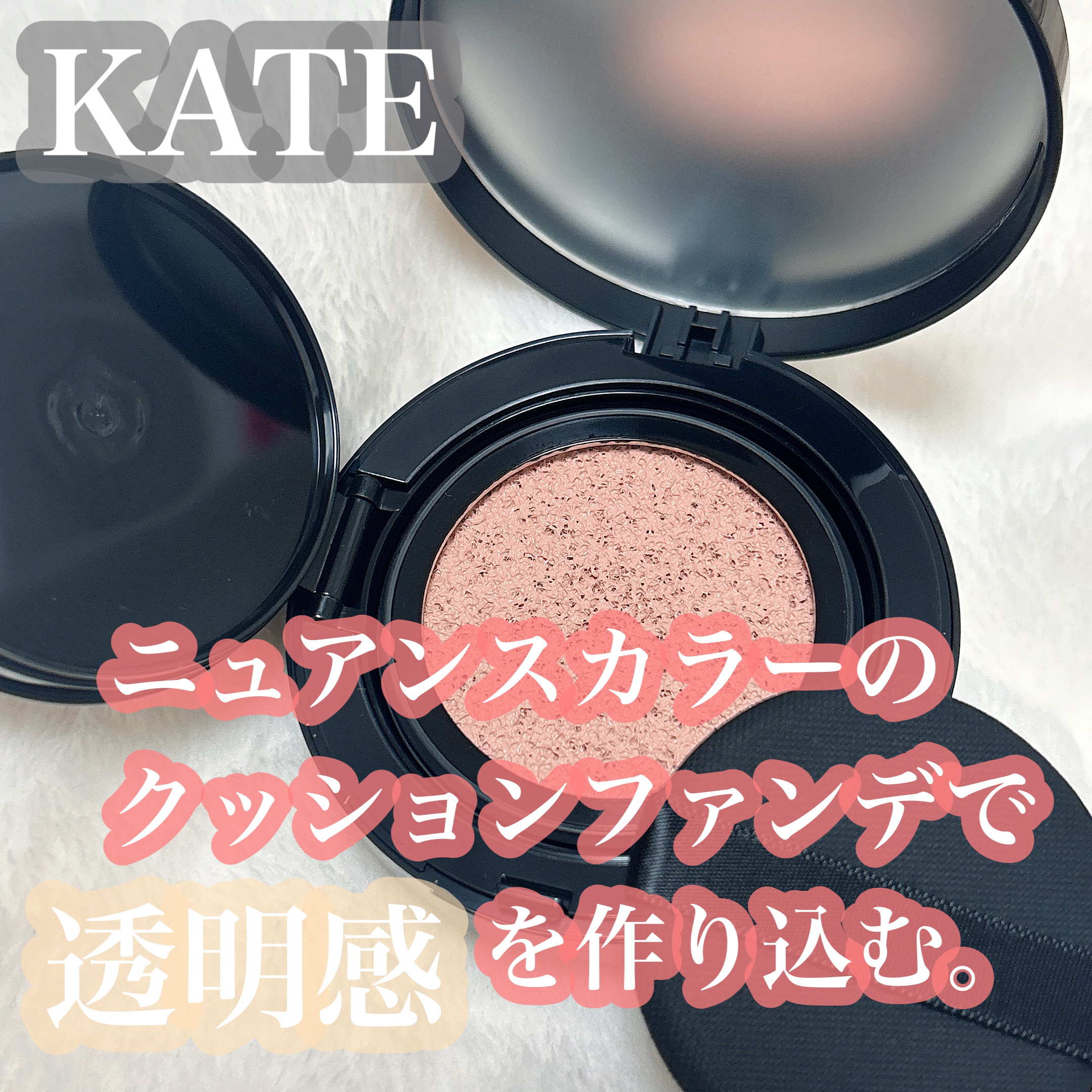 KATEのカラー&カバークッションが凄い!! カバー力も良くてキープ力も良い、というとんでもないアイテムです😳✨ 私は01のフェアピンク推しです!!黄ぐすみが飛んで透明感+血色感が出るので明るい印象に☺️ 塗り広げるとピターっと密着して、立体感あるセミマットな陶器肌に✨ 長時間お出かけして帰ってきても綺麗なまま、、、!