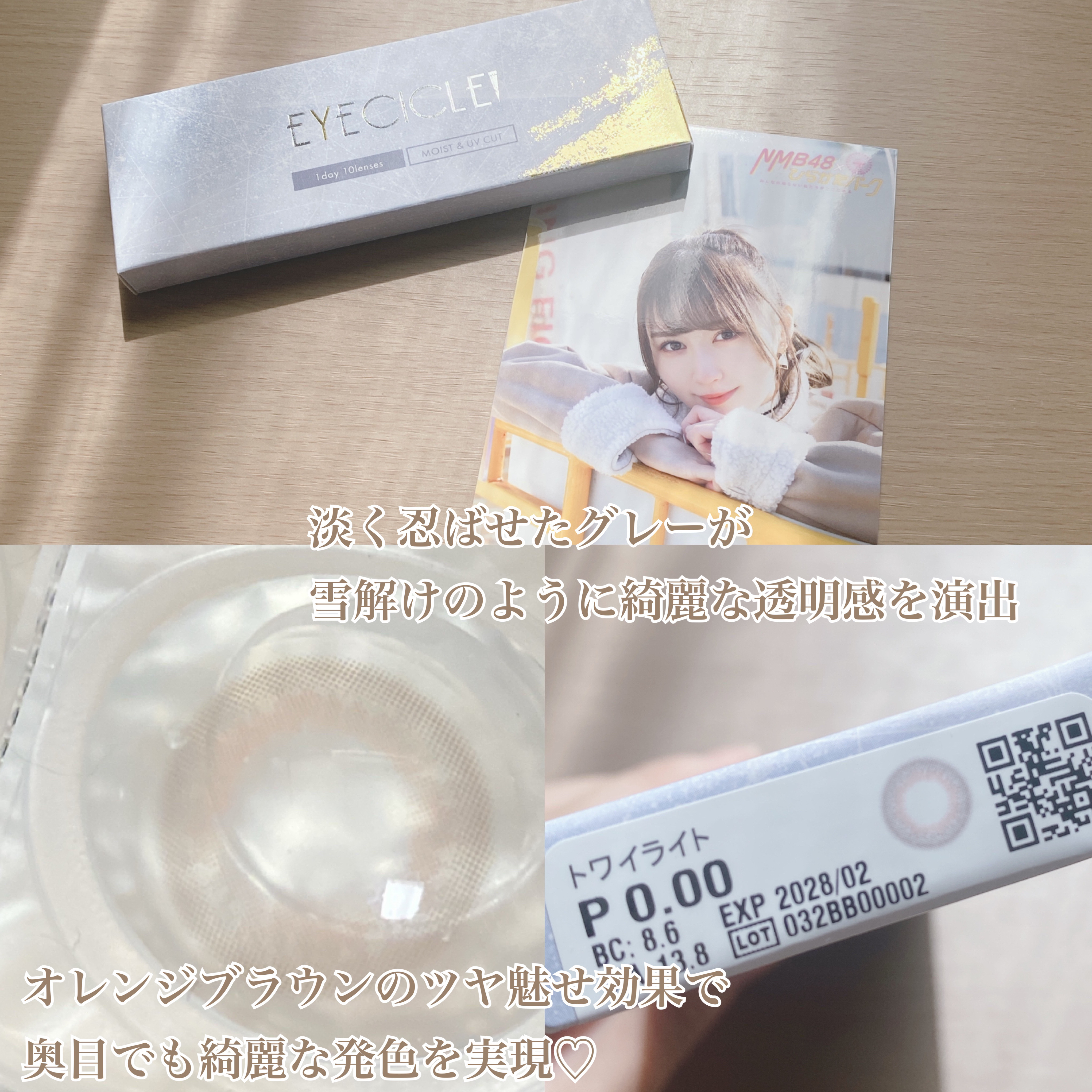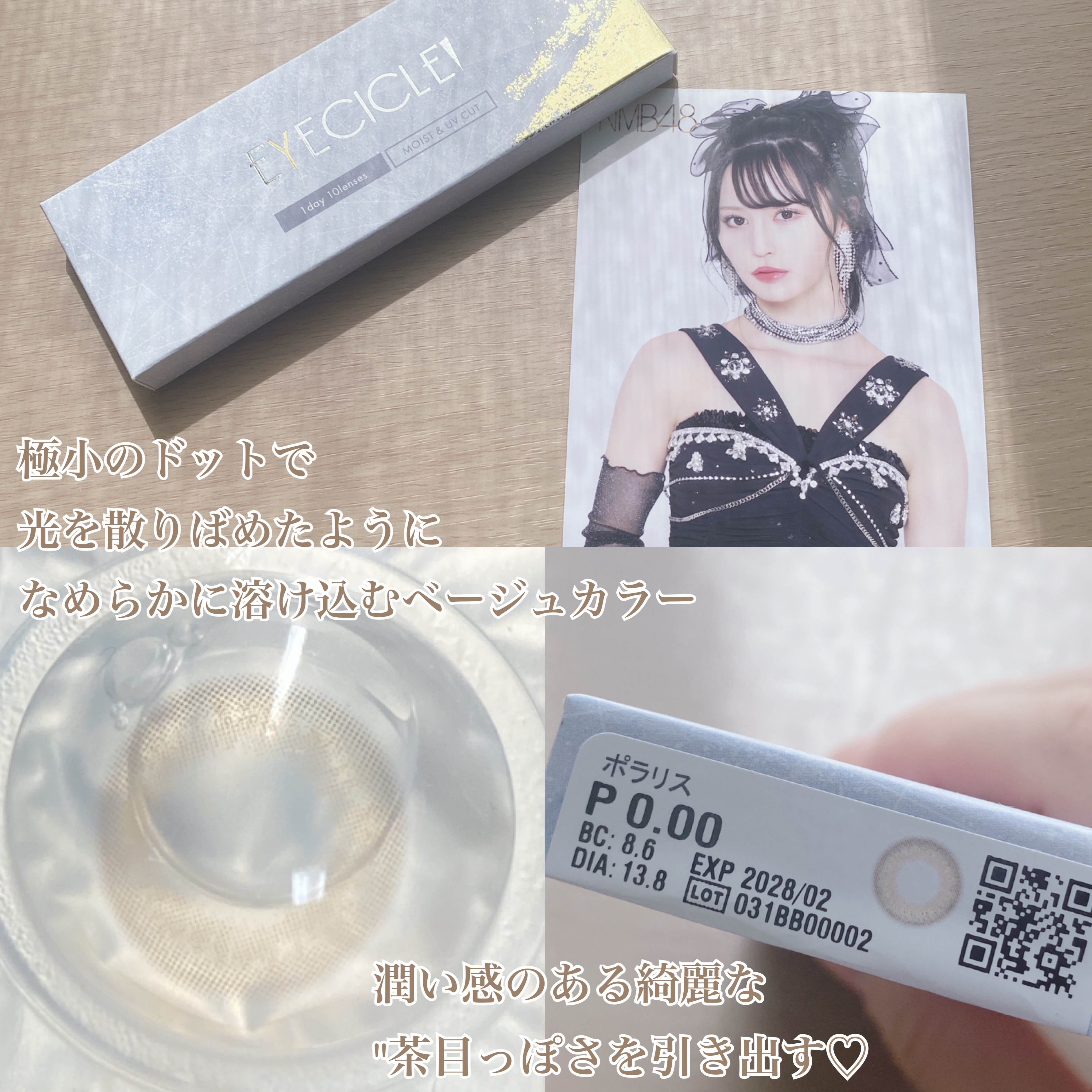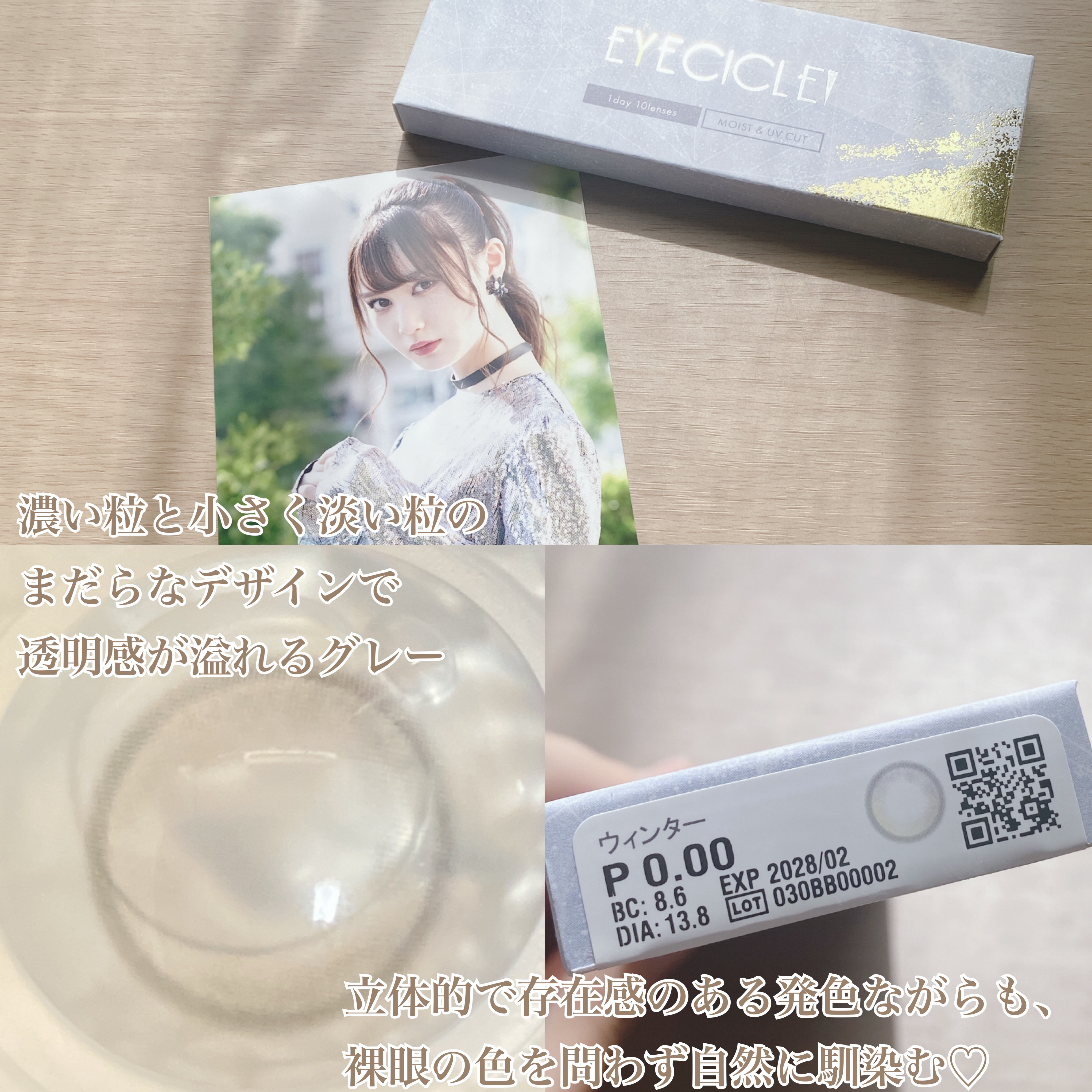 - 溶けゆく氷に反射にする、光の粒のような美しい瞳を...。 国内承認カラコン最小*サイズ【DIA13.8mm】で小さく盛れる透明感カラコン『EYECICLE(アイシクル)』 三白眼や黒目が小さいことを隠すのではなく、黒目そのものを活かし極限まで自然に可愛く、そして美しく魅せるデザインを実現しました。 ※小さいからこそ、徹底的こだわりました※ ・極小ドットで裸眼に溶け込むように馴染むなめらかで美しい発色。 ・キツくなりがちな印象をほわっと優しい印象に変えてくる不均一でまだらなドットデザイン。 ・奥目に対処できる立体感のあるガラス玉のようなデザイン ・太陽の光を浴びているかのようにキラリと輝く透明感。 *高度医療機器承認カラコン 2025年6月時点