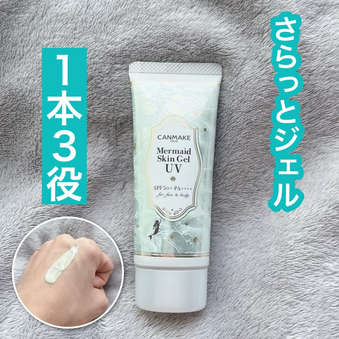 *キャンメイク*マーメイドスキンジェルUVSPF50+/PA++++40g¥77002ホワイト顔・体用の日焼け止めジェルです美容成分85%配合で化粧水感覚で使えるため、洗顔後にすぐ使えます洗顔料で落とせるタイプです安価ですが40gなので小さめ...