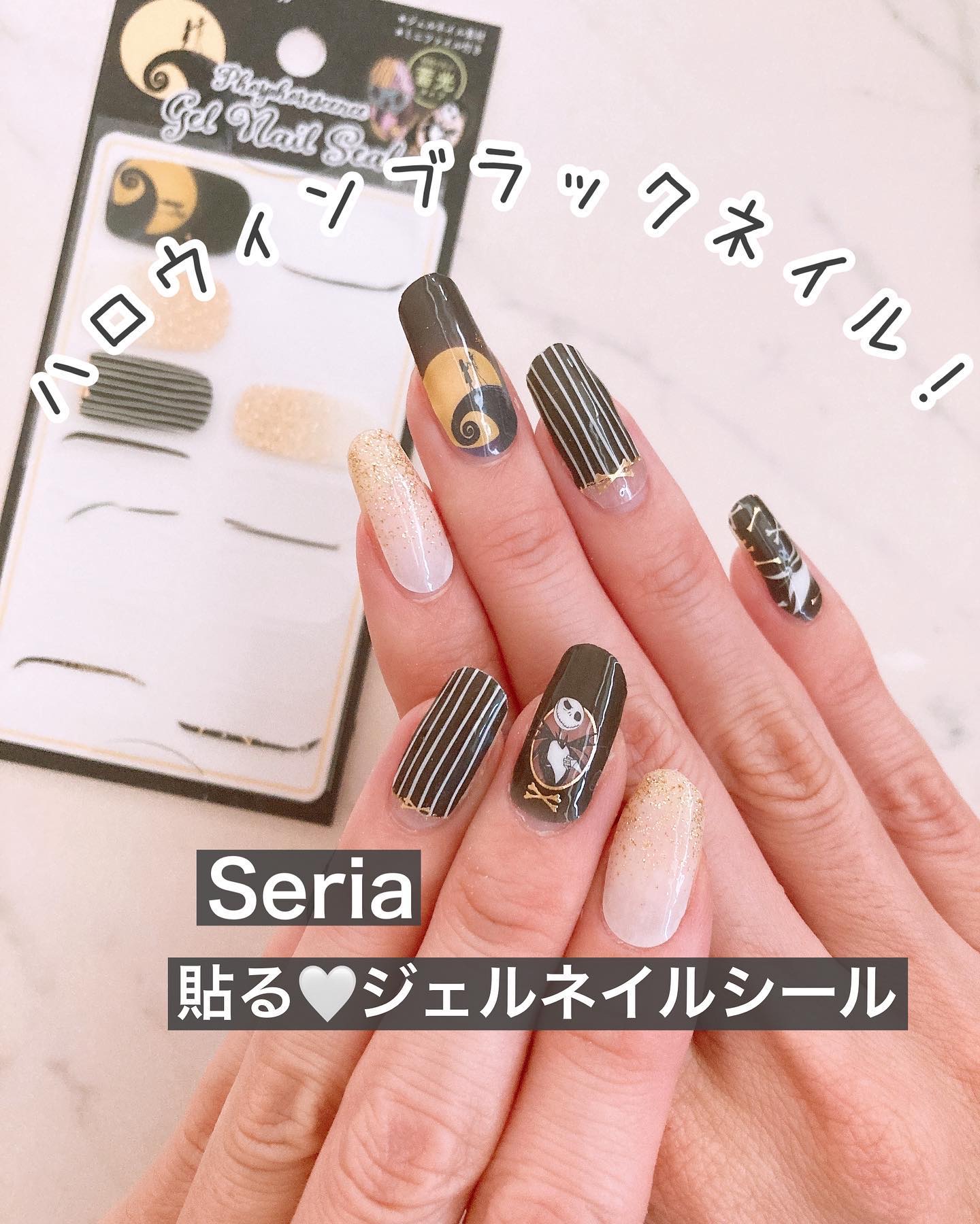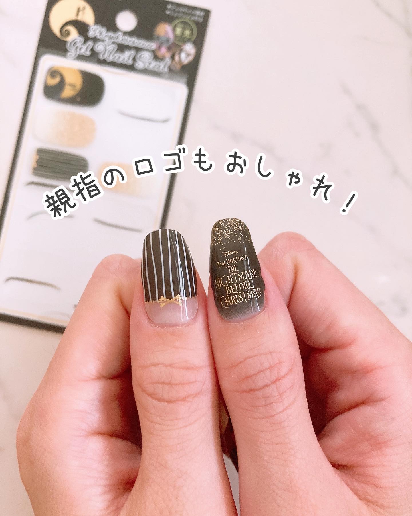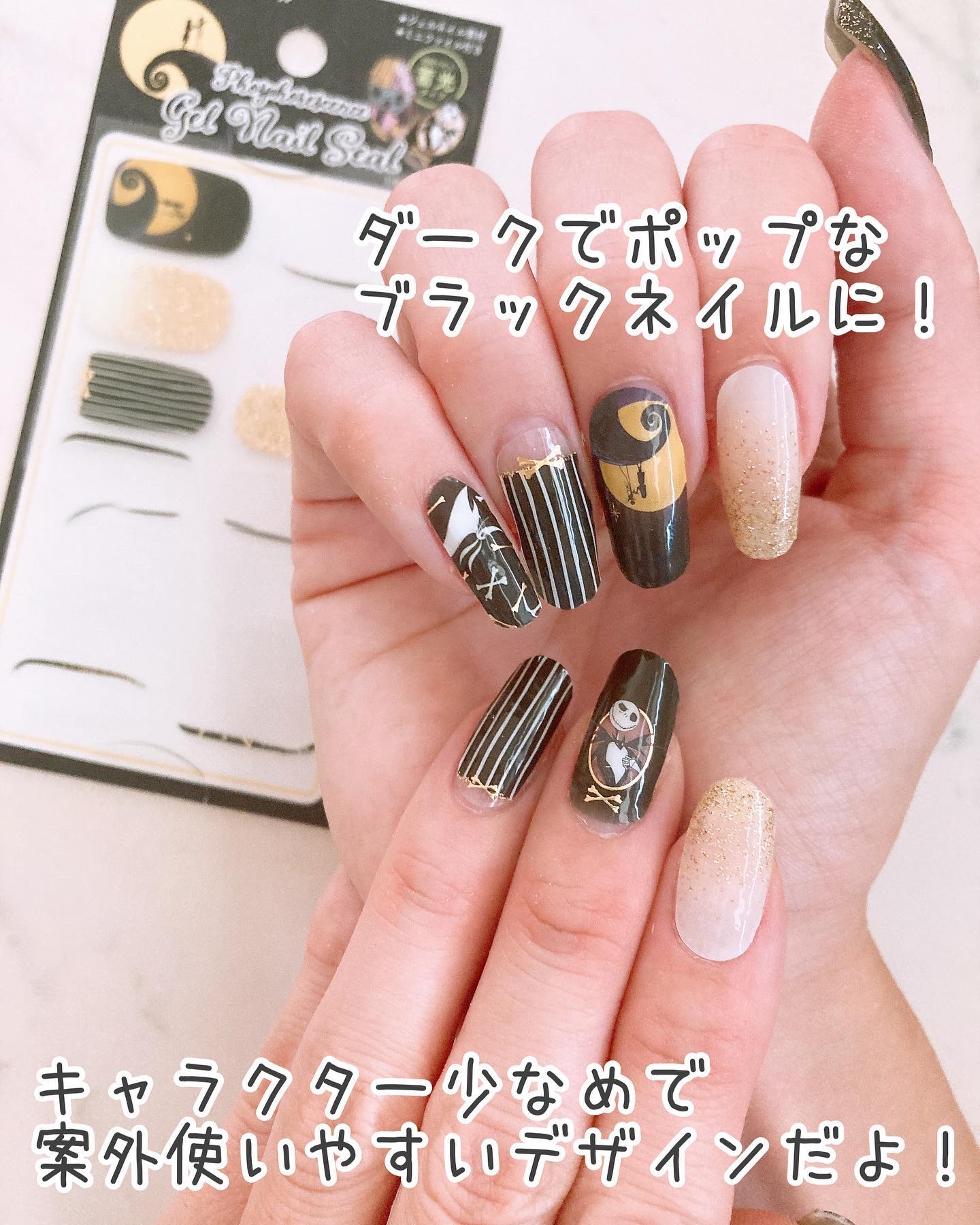 シールは柔らかくて貼りやすい。 上からマグネットジェルを塗って、キラキラにしてみました。 数日はもつけど、硬化後もシール感覚で、少し浮くとそこからキレイに剥がれます🤭 お手軽に短期間でやるならいいかな。 ディズニーハロウィン🎃のときとか、やっていきたい💅