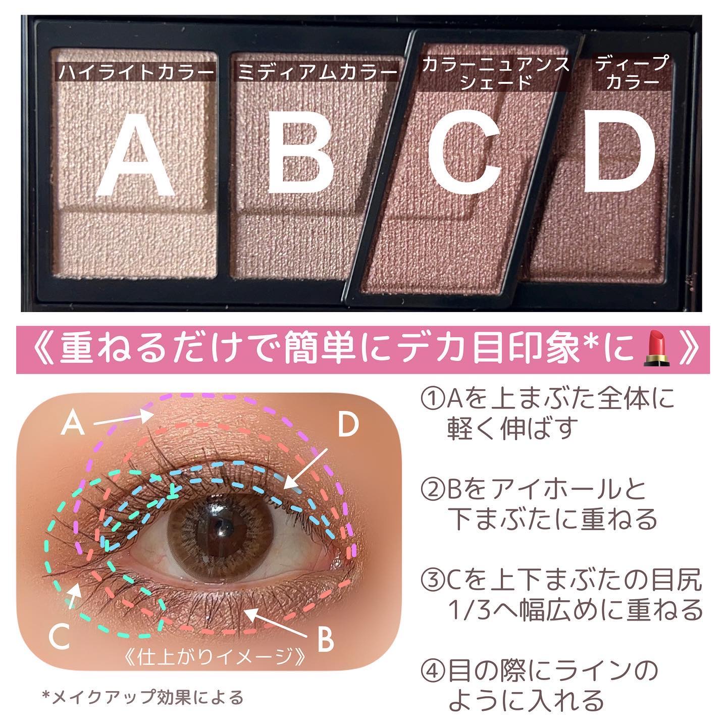 - カラーニュアンスシェードを目尻に入れるだけで目幅を大きく見せ※、抜け感のある明るい大きな目元に仕上るブラウンアイシャドウ。 ブラウン×カラーニュアンスの4色セット。※メイクアップ効果