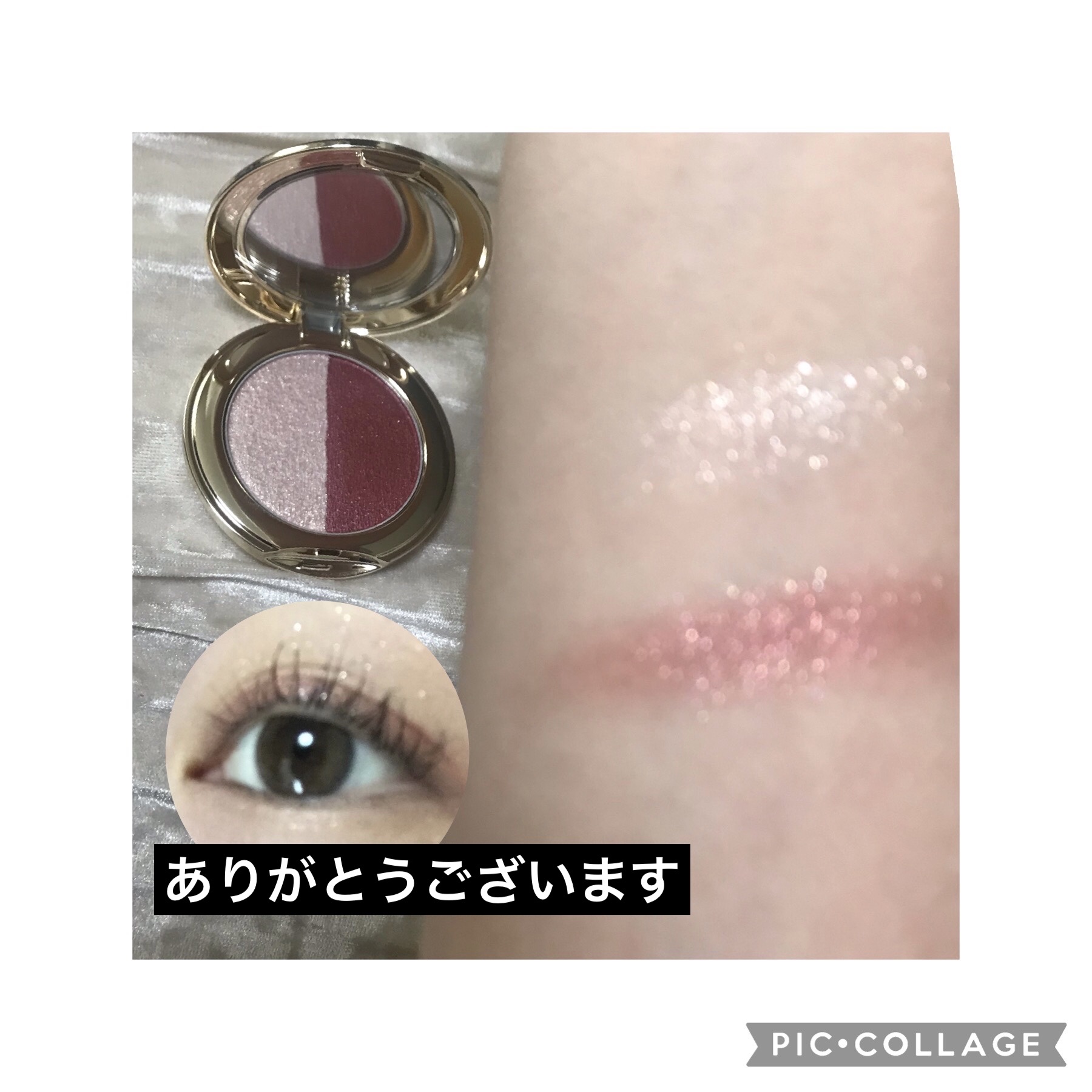 パレットの大きさは両手におさまるサイズです🤲 ピンクが好きなので購入しました。 ピンクブラウンっぽい感じになり思っていたよりも使いやすく活躍しそうな予感がします😌 チークはゴールドラメが入ってます。肌馴染み良いカラーです。 濃いピンクのラメが入っているので想像よりかなり可愛く仕がります🥰