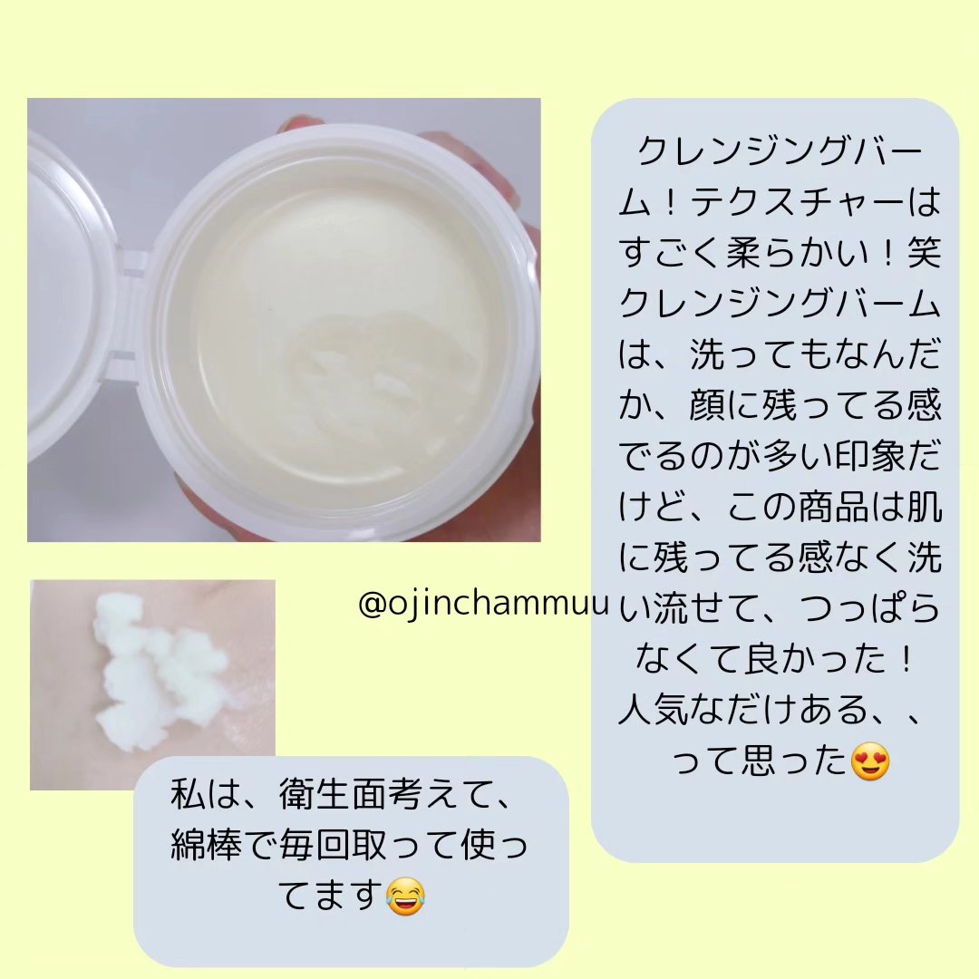 | バームが取ってみるとじんわりととろけてきて、なめらかなテクスチャーに!馴染ませやすくて使いやすいです。 | 詳細を見る | ||