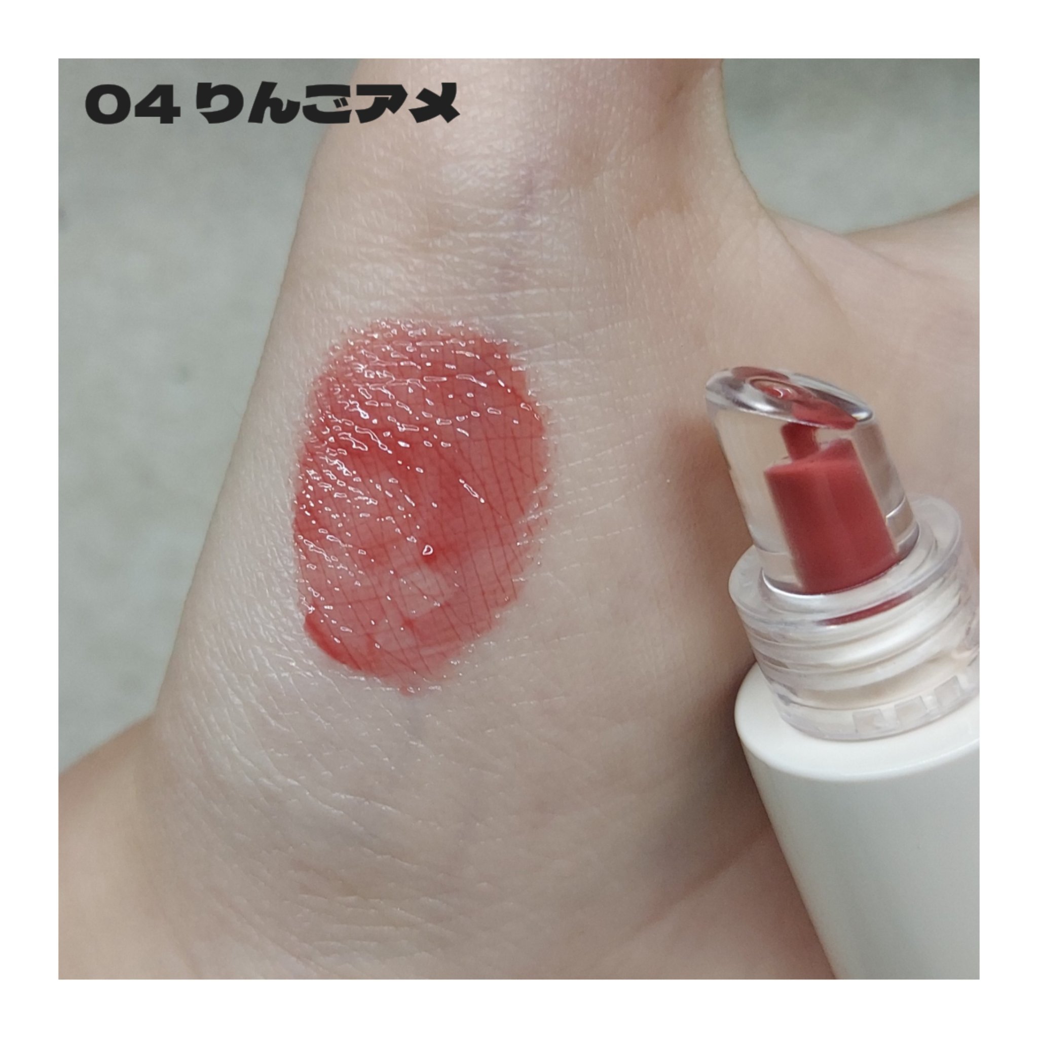 - 保湿成分たっぷりで、うるうるのぽってり唇*1を長時間演出。 透け感×馴染みのいいカラーで、いつものリップに潤いとあざとさをプラス! ノールックで塗り直しできるので、学校やお仕事の日にもオススメ。 01 ももドロップ ももドロップはドロップのような透け感と低彩度のももピンクで一番*2ナチュラルなカラー。 赤ちゃんのように自然な血色感で、白湯メイクにオススメ。 02 いちごジャム いちごジャムはジャムのようなぷるぷる感と、キュートな少女ピンクの定番カラー。 甘くてカワイイ雰囲気をまといたい日や、純欲メイクにオススメ。 03 みるくウーロン みるくウーロンはクリーミーなベージュウーロンカラーで一番*2なじみのいい粘膜つやカラー。 ちょっと血色を足したいすっぴんメイクや、スクールメイク、お仕事メイクにオススメ。 04 りんごアメ りんごアメは完熟りんごアメのようなちゅるちゅる火照りレッドカラー。 ぽってりリップで色気を出したい日や、ベースリップの発色が物足りない時にも。 *1メイク効果 *2ブランド内において