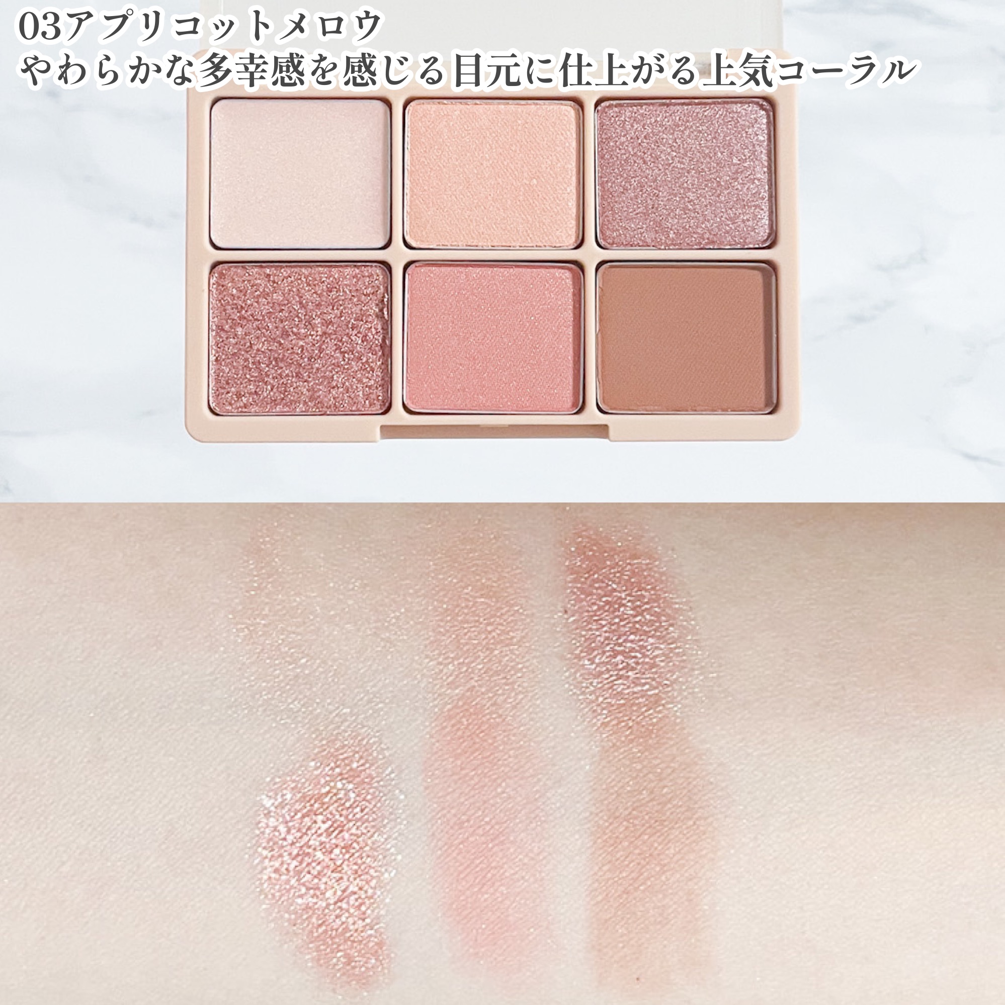 - シルキーななめらかさつづく#シルクシャドウ。 ハイライトやアイブロウ、チークにも使える質感MIX6色マルチパレット。ワンパレットで目元メイクが完成し、統一感のあるおしゃれ顔が簡単に。 どの色を重ねてもにごらず透け色がきらめき、微細なラメもぴたっと密着、失敗しらず。(5つの保湿美容成分配合*で目元しっとり。) *ヒアルロン酸Na、セラミドNP、カニナバラ果実油、シア油、ヤシ油