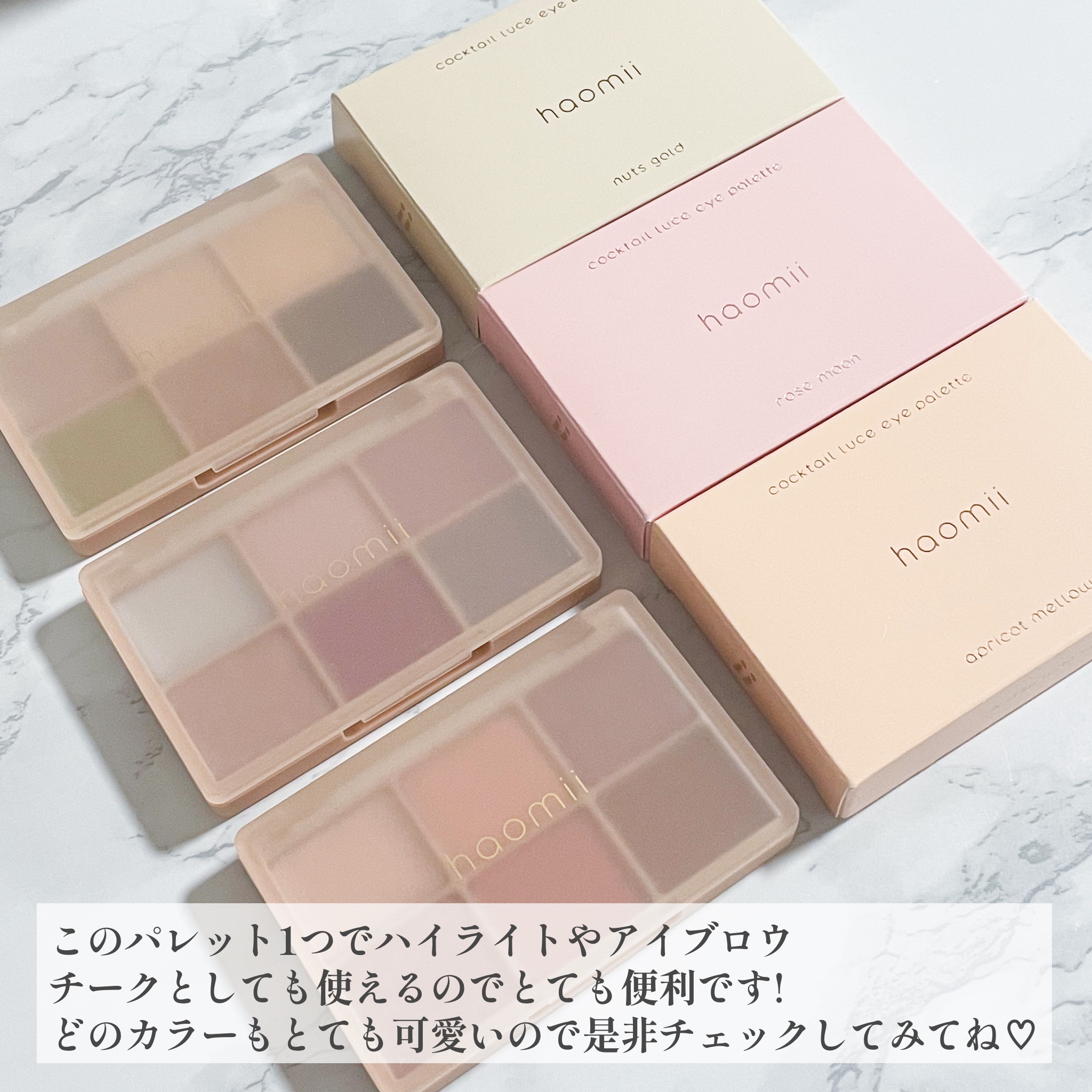 甘めのコーラルピンクはもう飽きた!オシャレなカラーを使いたいけどイエベ春はコーラルとかオレンジばっかりオススメされる😮💨 haomiiは6色パレットでバームが1色入っているのが特徴!コーラル以外に明るめマットブラウンや赤みカラーや肌馴染みの良いグレイッシュサテンカラーが入っています! LUMMIRは10色パレットで全体的に淡めな発色!ライトピンクや赤みカラー、ベージュ系グリッターなど使いやすいカラーばっかり!