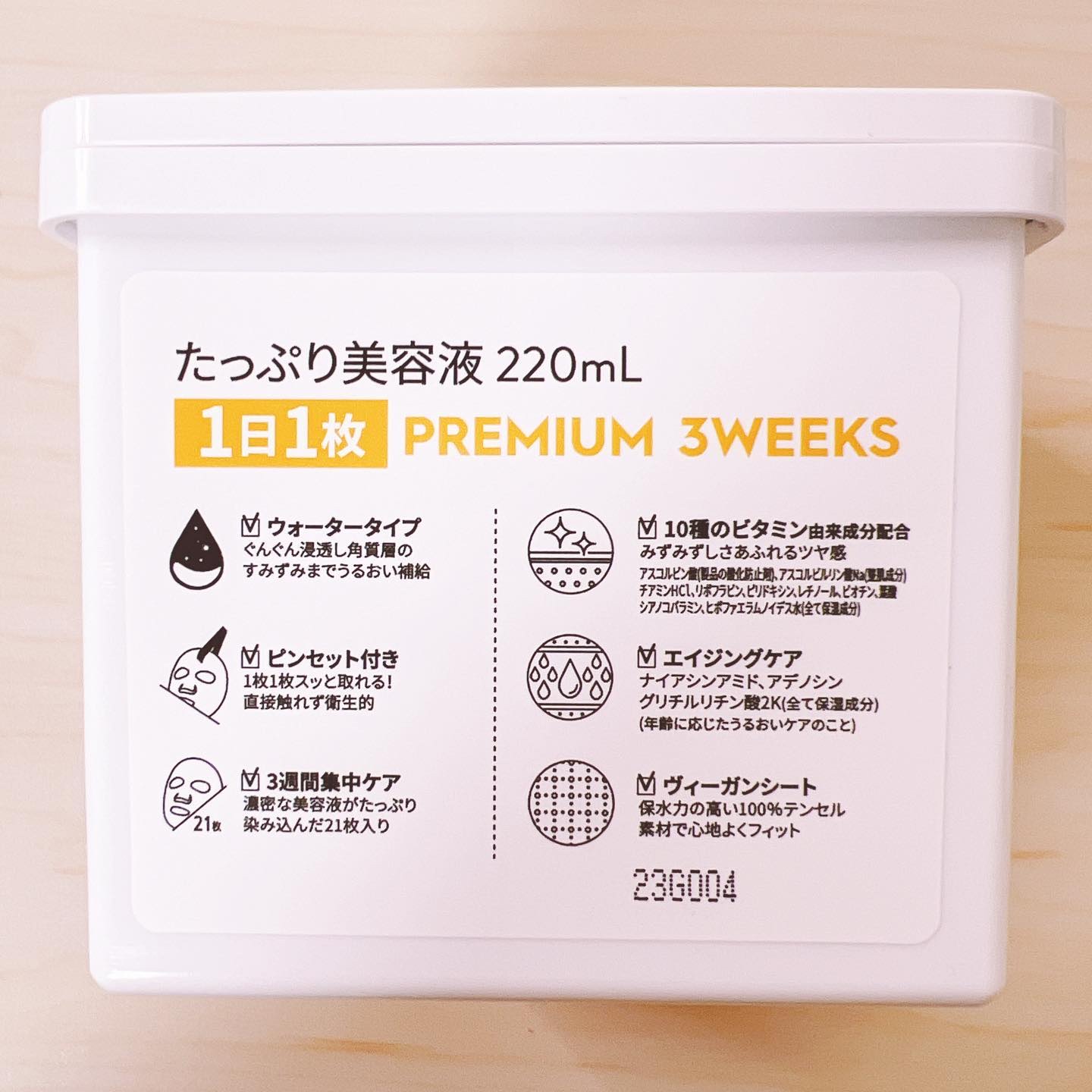 - <21枚> 水、DPG、ナイアシンアミド、グリセリン、メチルプロパンジオール、レチノール、アスコルビン酸、アスコルビルリン酸Na、チアミンHCl、リボフラビン、ピリドキシン、ビオチン、葉酸、シアノコバラミン、ヒポファエラムノイデス水、アラントイン、アデノシン、アルギニン、グリチルリチン酸2K、ヒアルロン酸Na、オレンジ果皮油、BG、ラウリン酸ポリグリセリル10、1,2-ヘキサンジオール、カルボマー、キサンタンガム、トコフェロール、ヒドロキシアセトフェノン、BHT、BHA、ラウリン酸ポリグリセリル-4、ポリソルベート20、EDTA-2Na、リモネン