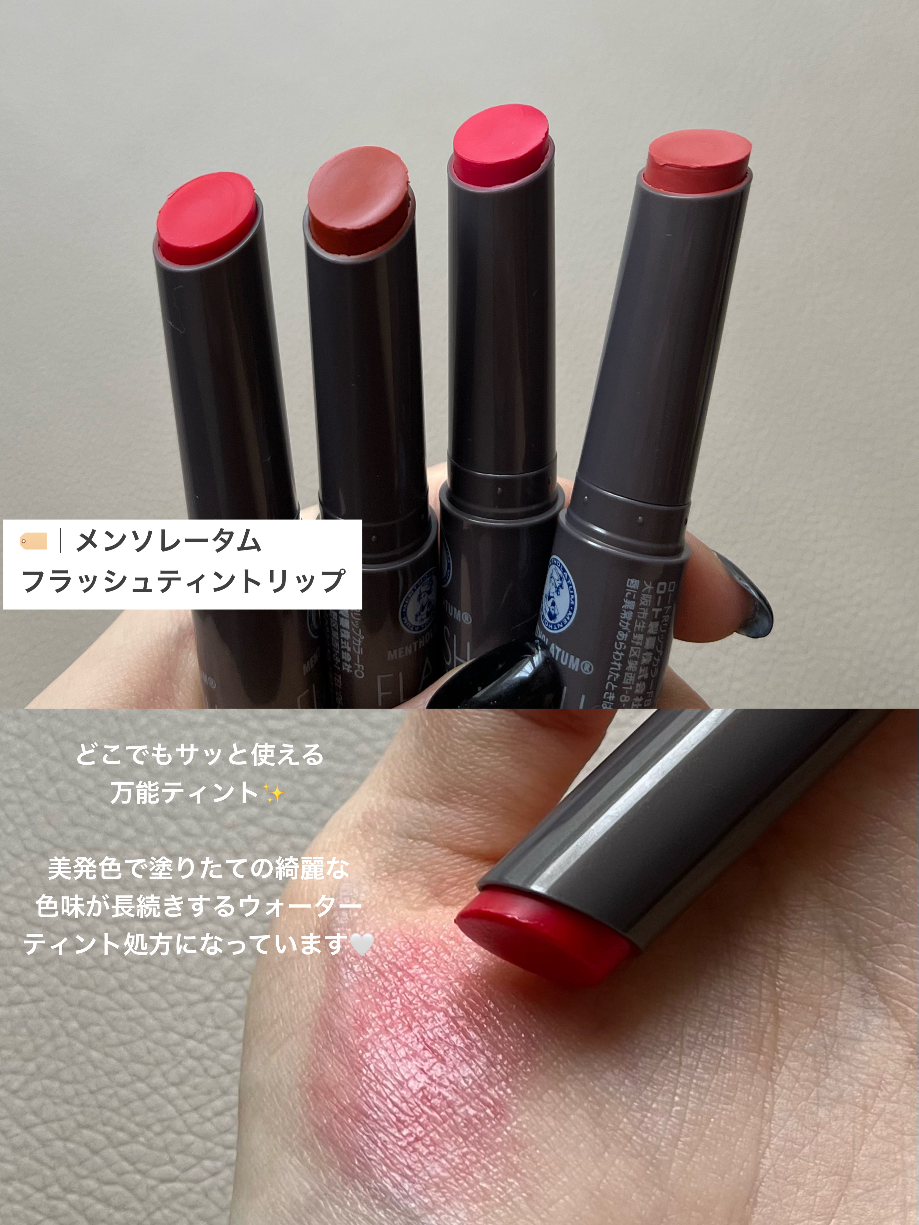 #PRメンソレータムのフラッシュティントリップが良すぎてびっくりした…🥹❤️唇の水分に反応して発色するから、はみ出しちゃっても大丈夫◎鏡なしでもスルッと塗れて、上品なツヤ仕上がり💋✨うるおい成分配合で保湿感のあるつけ心地だから乾燥が気になりに...