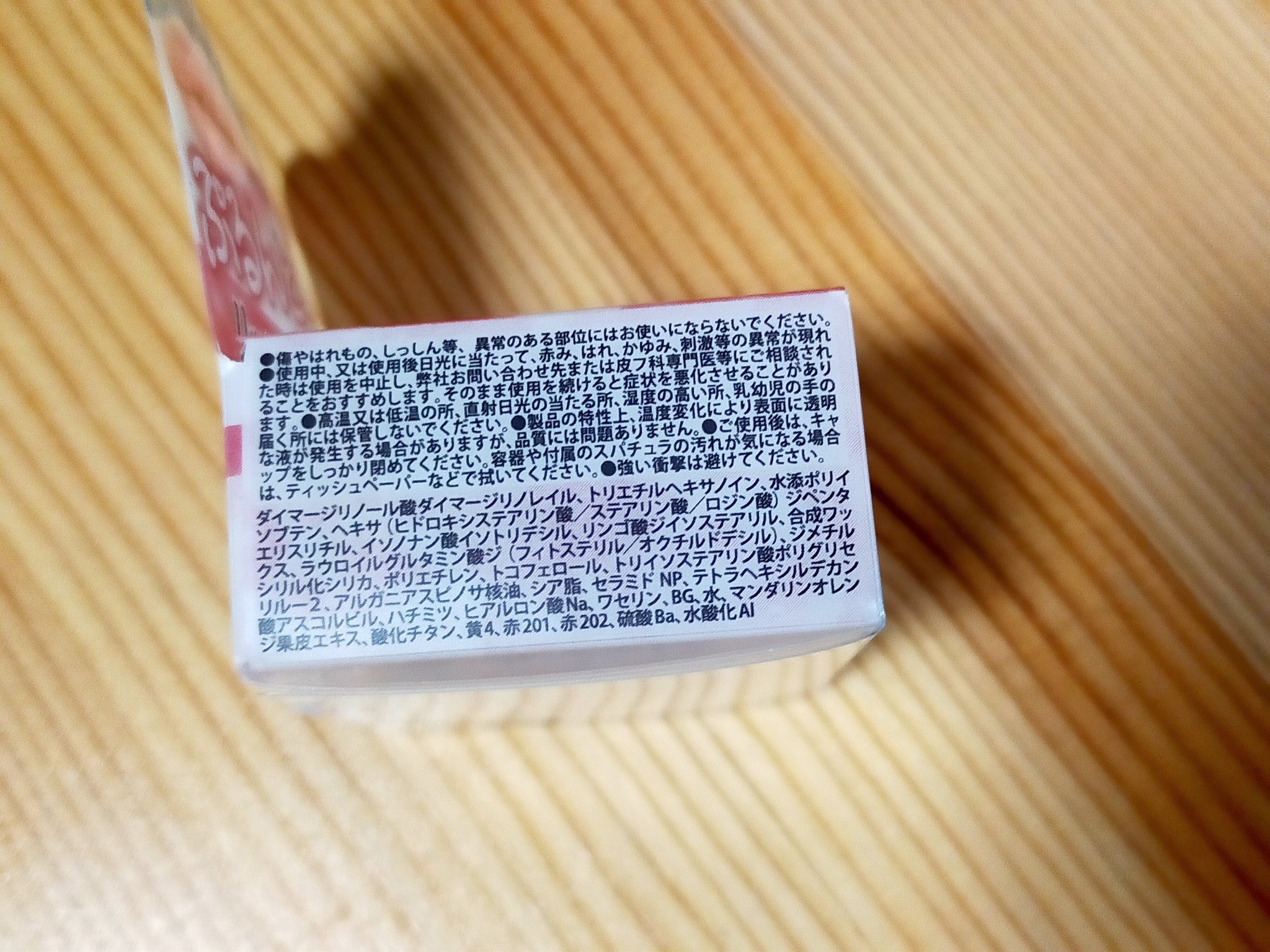 - <01 クリアピンク> ダイマージリノール酸ダイマージリノレイル、トリエチルヘキサノイン、水添ポリイソブテン、ヘキサ(ヒドロキシステアリン酸/ステアリン酸/ロジン酸)ジペンタエリスリチル、イソノナン酸イソトリデシル、リンゴ酸ジイソステアリル、合成ワックス、ラウロイルグルタミン酸ジ(フィトステリル/オクチルドデシル)、ジメチルシリル化シリカ、ポリエチレン、トコフェロール、トリイソステアリン酸ポリグリセリル-2、アルガニアスピノサ核油、シア脂、セラミドNP、テトラヘキシルデカン酸アスコルビル、ハチミツ、ヒアルロン酸Na、ワセリン、BG、水、マンダリンオレンジ果皮エキス、酸化チタン、黄4、赤201、赤202、硫酸Ba、水酸化Al