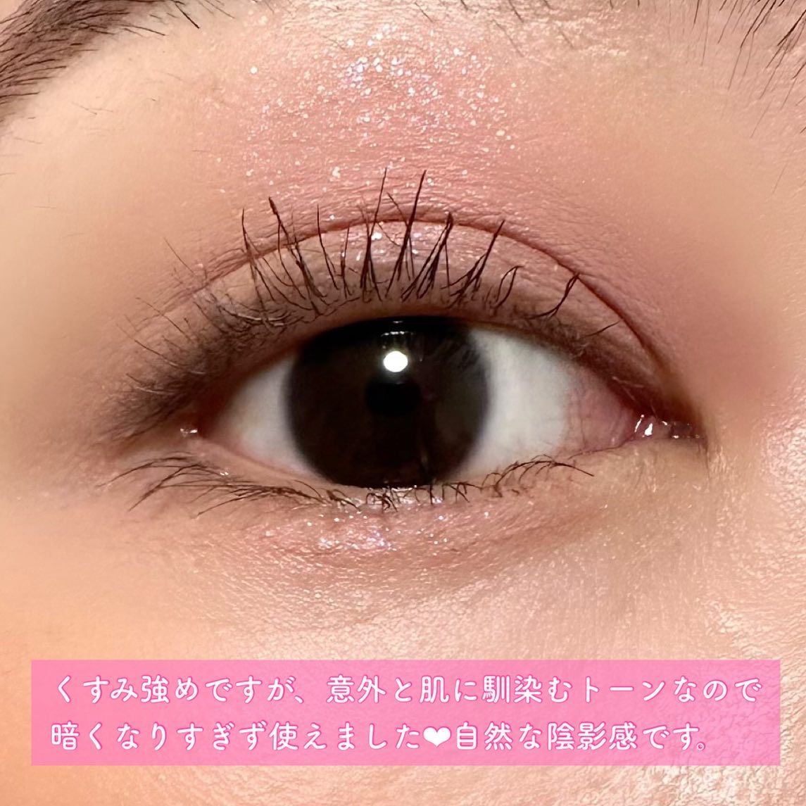 このパレットは、黄味が少なめでブルベにも使いやすいブラウン。 発色はしっかり目だけど、ブラシで調節も可能なので幅広い人に使いやすいパレットだと思います🎀✨ ラメ感も少しずつ異なり、華やかさを抑えたい時は右上を多めに使うと品の良いツヤのあるピンクブラウンメイクになります💎✨ 左上のラメカラーは白っぽいのでどんなアイシャドウとも相性抜群! この可愛い色味と煌びやかなラメは唯一無二です!