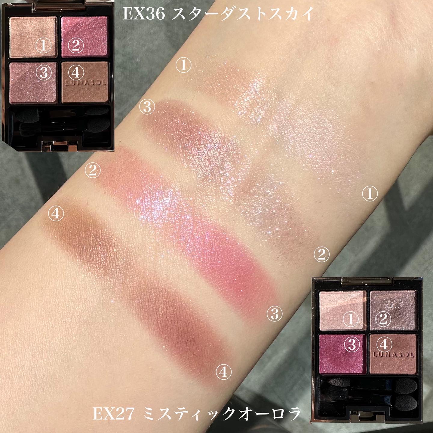 ルナソルアイカラーレーションEX36スターダストスカイ2023年のホリデー?だったらしいんだけどとっても可愛いことに最近気づいて購入!まだ買えるのすごい。とにかくラメ感ツヤ感がすごく綺麗。思ったより発色は淡めだったので、重ね方で濃さは調整でき...
