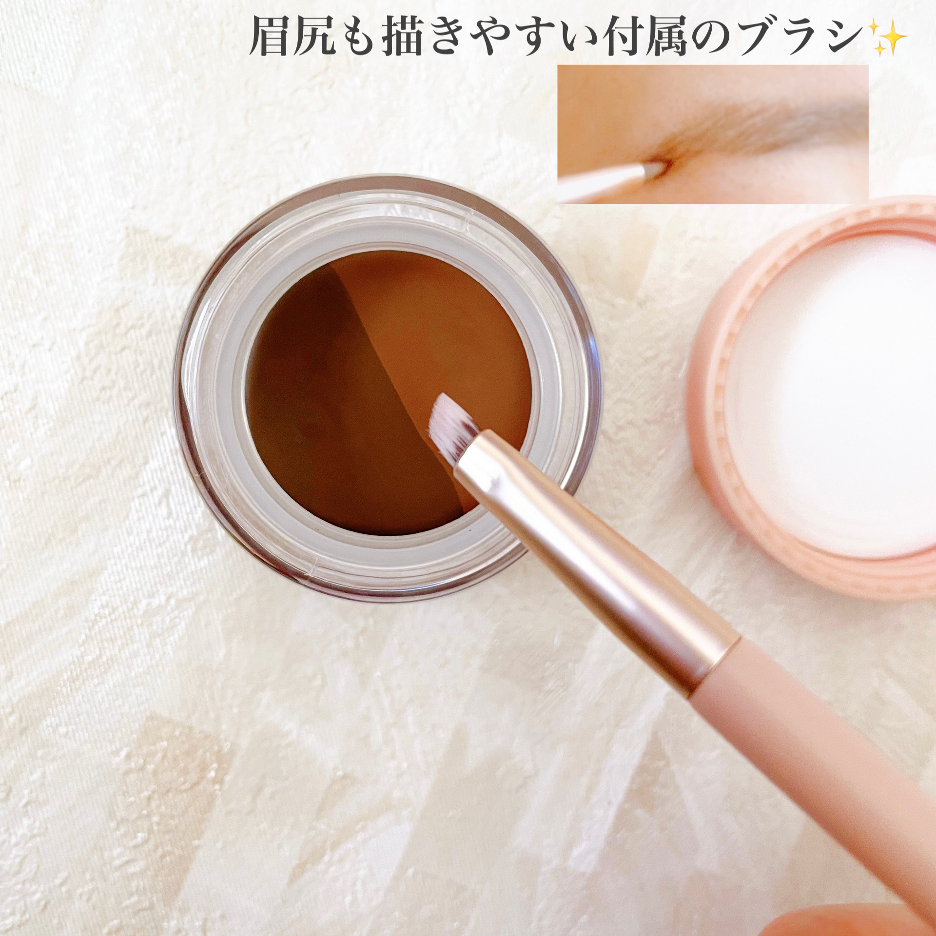 眉マスカラとペンシルの2in1だから、色がマッチして浮きにくい☺️🌟 スキニーペンシルと独自のジェルティントフィルムで描きやすく夜までキレイ🌠 こちらのアイテムはコンパクトで色味もこなれ感があって使いやすい◎