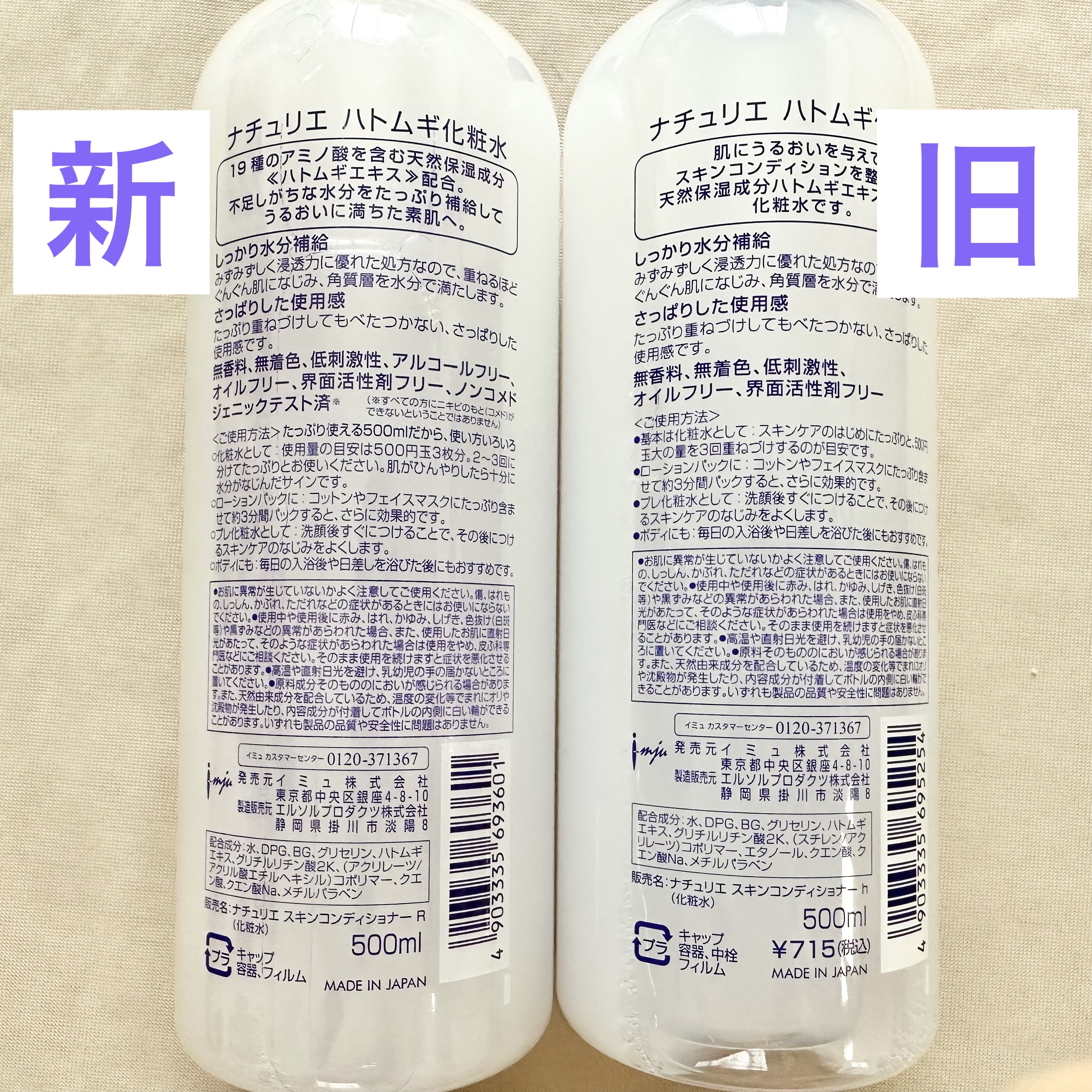 - <通常サイズ 500ml> 水、DPG、BG、グリセリン、ハトムギエキス、グリチルリチン酸2K、(スチレン/VP)コポリマー、クエン酸、クエン酸Na、メチルパラベン <500ml+ 限定ムーミンデザインボトル> 水、DPG、BG、グリセリン、ハトムギエキス、グリチルリチン酸2K、(スチレン/VP)コポリマー、クエン酸、クエン酸Na、メチルパラベン <詰め替えタイプ 480ml> 水、DPG、BG、グリセリン、ハトムギエキス、グリチルリチン酸2K、(スチレン/VP)コポリマー、クエン酸、クエン酸Na、メチルパラベン <旧製品> BG、グリセリン、メチルパラベン、エタノール、グリチルリチン酸2K、ハトムギエキス、DPG、クエン酸Na、プロピルパラベン、クエン酸、(スチレン/アクリレーツ)コポリマー、水 <限定ムーミンデザイン> 水、DPG、BG、グリセリン、ハトムギエキス、グリチルリチン酸2K、(スチレン/VP)コポリマー、クエン酸、クエン酸Na、メチルパラベン