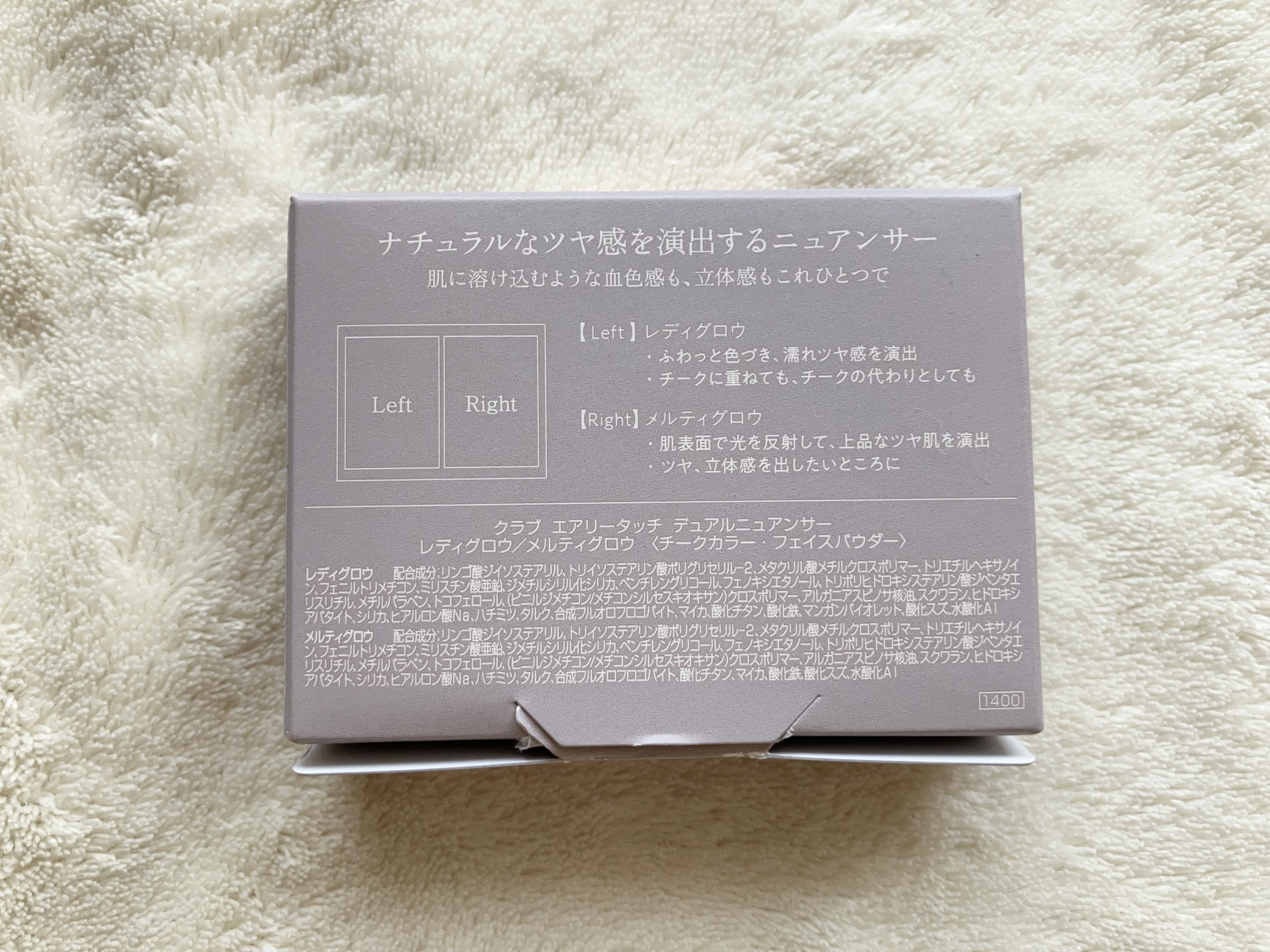 - テクいらずで素肌から生まれたようなツヤを与える多機能ハイライトパウダー。 ペールピンクとスキンベージュの2色でツヤ感だけでなく、血色感も演出できます。 しっとりとしたオイルリッチなパウダーで、厚塗り感のない自然なツヤ肌へと仕上げます。 〈パレット左〉「レディグロウ」温かみと柔らかさを与えるペールピンク 肌になじみやすく、ほんのり血色感を演出。微細パールで上品なツヤを与えます。 チークとしてもチークの上から重ねてもご使用いただけます。 〈パレット右〉「メルティグロウ」ナチュラルで上品なスキンベージュ 立体感を際立たせながら発光するような輝きを与えます。 ツヤが欲しい部分に追いツヤとしてもご使用いただけます。