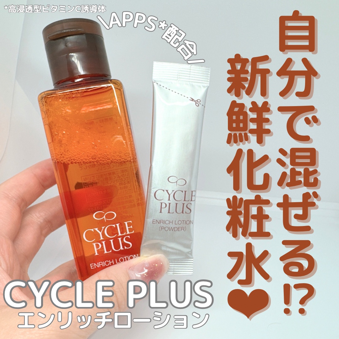 サイクルプラスエンリッチローション付属のパウダーを混ぜて20回ほど振って5分待てば完成!即効性と浸透力を考えた化粧水だから、翌朝から毛穴ケアできてる感じがして嬉しい✨#PR#supportedbynaris#サイクルプラス#ビタミンCスキンケ...