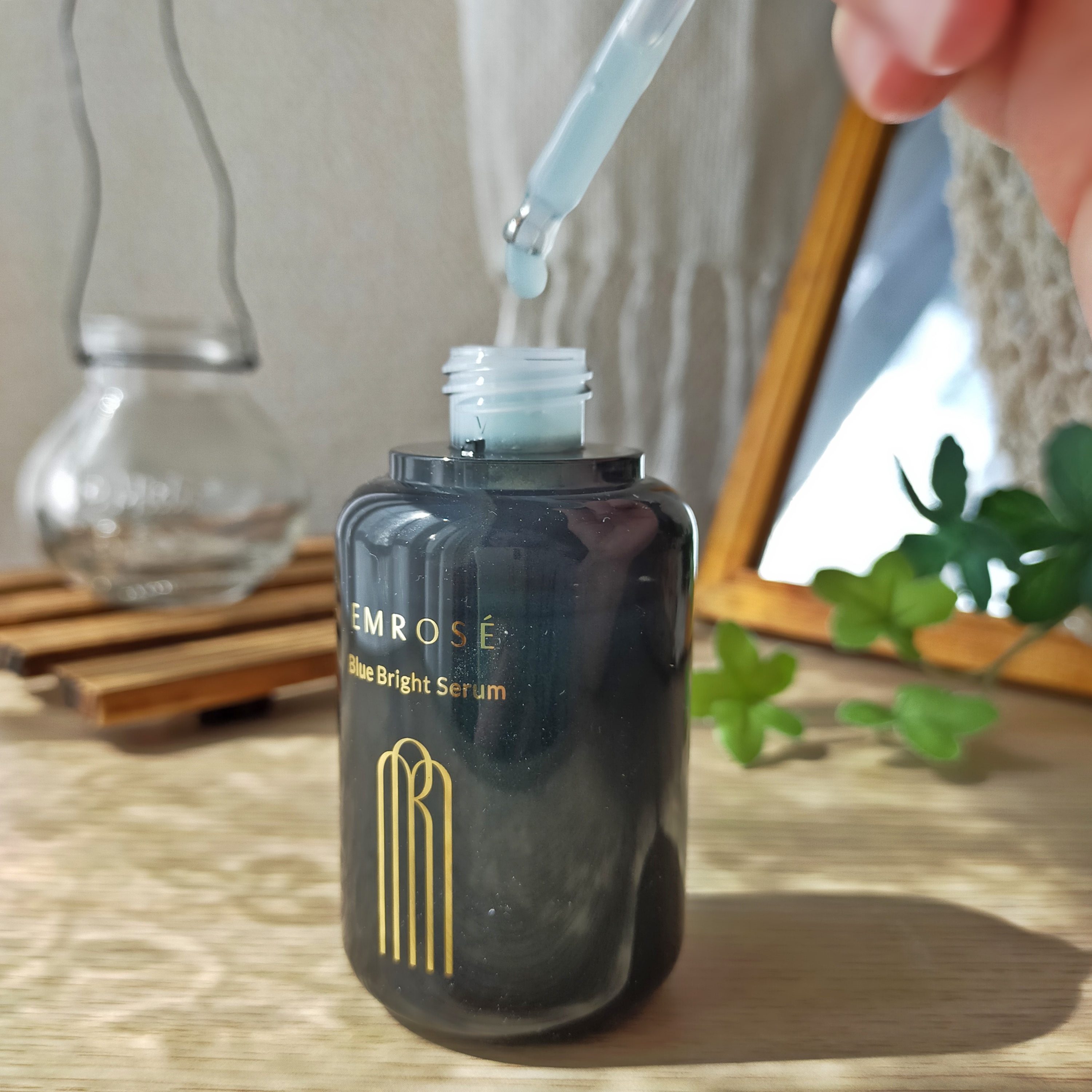 ナイアシンアミド、アルブチン、カンゾウ根エキスでお肌の土台(※1)にアプローチする美容液です。 なんと今までのエムロゼ商品よりもナイアシンアミド、アルブチン、カンゾウ根エキスの配合量をUPしているそうです。 また、お肌にやさしい5種の天然由来セラミドが配合されていて、外的刺激(※3)にさらされがちなデリケートな肌をうるおいのバリアで守ってくれるのだそうです。 さらにダメージ(※4)にさらされた肌にやさしくアプローチするエムロゼのブルーカーミングコンプレックスと共にDermatic3で肌の油分・水分バランスを整えてしっとりとした肌へと導いてくれるのだそうです。 ブラックにゴールドの洗練されたパッケージ。 とろみはあるけど、ぬるついたりせず、肌なじみ良好。 香りはフローラル系かな、上品で少し甘さのある感じ。