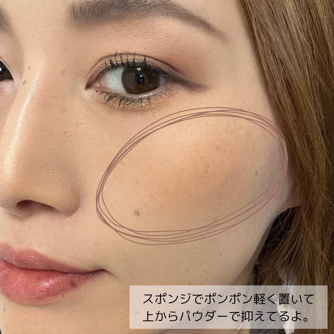 インスタライブでイガリさんが手の甲に出してスポンジで顔の中心部だけポンポンぬりしてて、真似したらすごく良かった! 透明感と立体感、チークの見え方もかわってきて、なにより夕方のくすみがきにならない。 自然光だとさらにきれいなのでぜひやってみてほしいです🙇