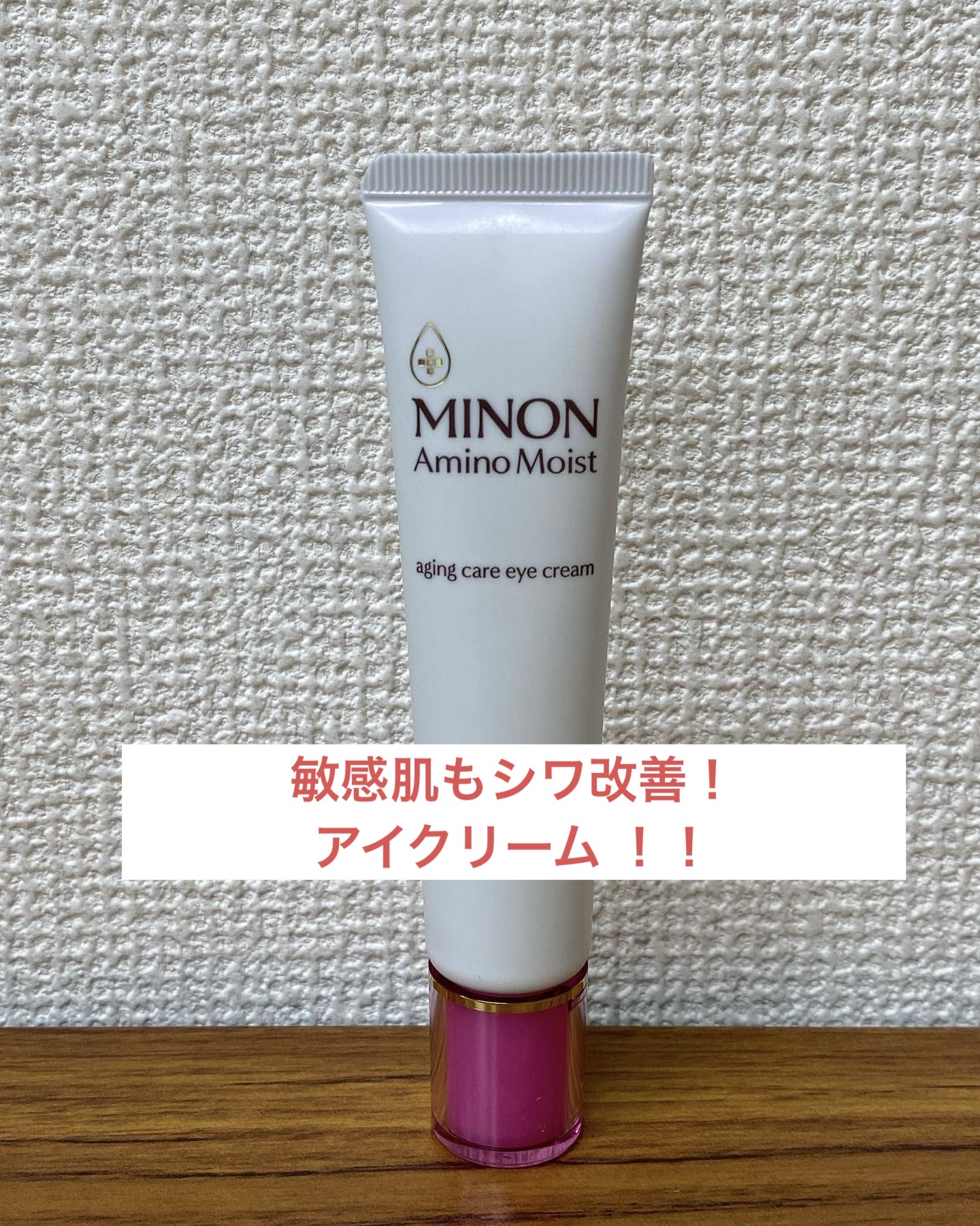 - 【敏感肌も使える薬用シワ改善アイクリーム】 ダブルの有効成分配合。気になるシワを改善し、しみ・そばかす*1、肌あれを防ぎます。 ●ナイアシンアミド:シワ改善&しみ予防 ●グリチルリチン酸2K:肌あれ予防 ハリを与えつや肌に導く「ハリシェイプペプチドWR*2」配合。 使い続けるたび、シワを改善し、うるおってハリのある明るい印象の目元へ。 エイジングケア:年齢に応じたお手入れケア *1メラニンの生成を抑え、しみ・そばかすを防ぐ *2ヤシ油脂肪酸水解コラーゲンK (販売名:ミノンアミノモイストAE)【医薬部外品】