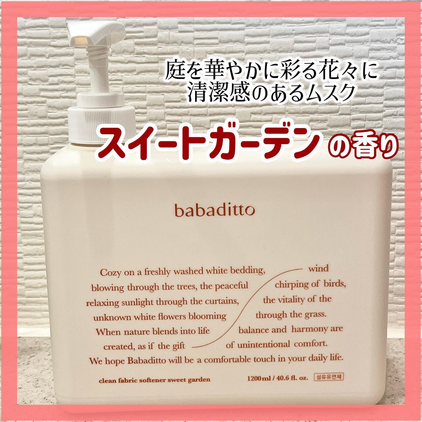 見た目もおしゃれ♡ インテリアにも馴染みます! ポンプと軽量カップが一緒についてきて、とっても使いやすい😊 スイートガーデンの香りを使いましたが強すぎずふわっと香ります🌸 香りが苦手な方でも使えそう✨ 天然由来成分97.5%☘ ̖́- 弱酸性の柔軟剤で生地の損傷予防、繊維をより柔らかくしてくれるみたい☺️ 無添加なので子供用衣類の洗濯にも🙆♀️ ベビー服にも👶