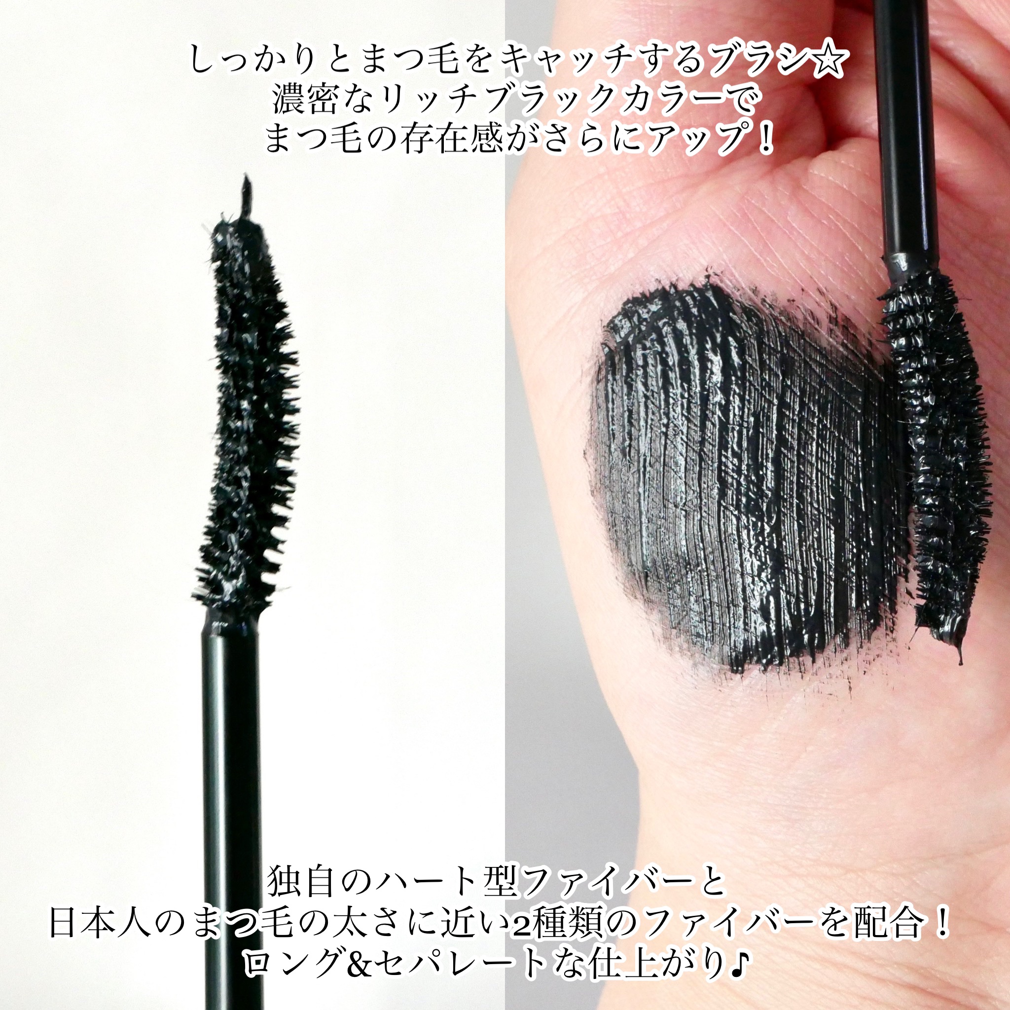 - まつ毛を根元から立ち上げ、一本一本しっかりカールアップ。 艶やかな漆黒ブラックが、瞳のフレームを際立たせ、凛とした強さを宿したナチュラルで品のある眼差しに。 まるで ‷パリジェンヌラッシュリフトをかけたかのような仕上がり‴ を塗るパリジェンヌのマスカラで叶えます。 "塗るパリジェンヌ" 【POINT1】感動*カールアップ&キープ力 カール&キープWAXがまつ毛にハリを持たせてグッと立ち上げ、フィルムポリマーが被膜を形成し上向きカールをキープ。羽根のように軽いハート型ファイバーでまつ毛が下がらず、上向きカールを長時間キープ。 *メイクアップ効果による印象 【POINT2】ロングセパレートな仕上がり 日本人のまつ毛の太さに近い2種類のファイバーと、オリジナルハート型ファイバーを黄金比率でブレンド。独自のハート型の形状がまつ毛一本一本に絡みつきしっかりフィット。自まつ毛のような自然で美しい長さが叶う。 【POINT3】漆黒の艶まつ毛 4種のワックス*成分「ラッシュグロウコンプレックス」を配合し、濡れたような艶と品のあるブラックカラーを実現。透明感をプラスして、品のある目元に。 *ミツロウ、カルナウバロウ、水添ロジン酸グリセリル、キャンデリラロウエキス 【POINT4】Cカーブブラシ 根元からまつ毛を抱え込むように塗ることができる細身のCカーブブラシを採用。まつ毛を根元から立ち上げ一本一本しっかりカールアップします。 ・速乾性:素早く乾き、カールロック。上向きまつ毛を長時間キープ。 ・簡単オフ:自まつ毛にも優しいフィルムタイプで、お湯で簡単オフ。 ・ウォータープル―フ:水、汗、涙に強くにじみにくい。 ・トリートメント:9種のまつ毛美溶液*成分配合。*保湿成分