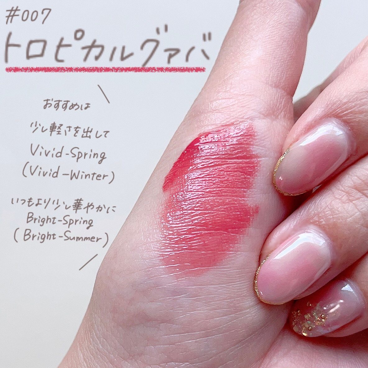 これ、インスタの広告で見かけて一目惚れして秒で買った🥺! まるで名刺みたいなリップグロス。 これ本当にうっすいんですよ!! リップ持ってるのうっかり忘れるくらい ポーチに入れても隙間にスッと入る。 なので持ち運びには最高🥹 なんならずぼらな私は ポッケに入れたくなる(一応我慢してる) 116は明るくやわらかさのあるピンク。 ほんのり青み寄りでブライトサマー、 ブライトスプリングには使いやすい◎ 118は青みのレッド。 こっちも全く重さはない まろやかさのある赤なので、 ブライトサマー、クールサマー クリアウィンターの軽めの赤としておすすめ♡ 色持ちは特別良い!って訳ではない。 ただ、うるみ感が残るので 潤い感のある唇に見えるのと 汚く落ちないので使いやすいです🙆♀️