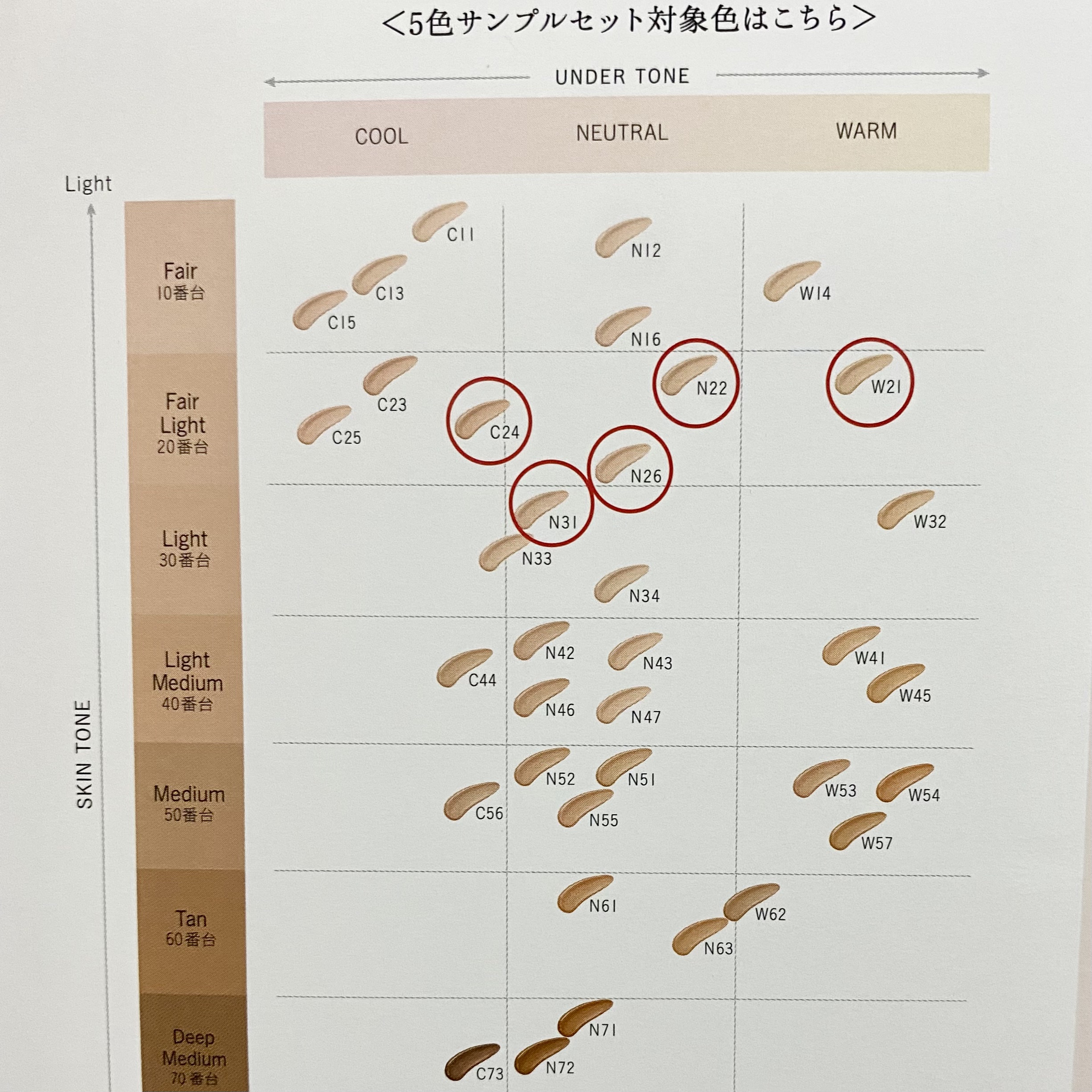 - <C11> 水、シクロメチコン、タルク、ジメチコン、エタノール、トリフルオロアルキルジメチルトリメチルシロキシケイ酸、メトキシケイヒ酸エチルヘキシル、イソノナン酸イソトリデシル、安息香酸アルキル(C12-15)、ビス(PEG/PPG-14/14)ジメチコン、シリカ、アストロカリウムムルムル種子脂、シロキクラゲエキス、ゼニアオイエキス、ダマスクバラ花エキス、テトラヘキシルデカン酸アスコルビル、トコフェロール、ヒアルロン酸Na、マツリカ花エキス、レモン果実エキス、BG、BHT、PEG-9ポリジメチルシロキシエチルジメチコン、(アクリレーツ/アクリル酸エチルヘキシル/メタクリル酸ジメチコン)コポリマー、(チタン/酸化チタン)焼結物、(フッ化/水酸化/酸化)/(Mg/K/ケイ素)、キサンタンガム、ジステアルジモニウムヘクトライト、ジフェニルシロキシフェニルトリメチコン、スクワラン、ステアリン酸、トリエトキシカプリリルシラン、ラウロイルリシン、レシチン、塩化Na、含水シリカ、合成フルオロフロゴパイト、酸化スズ、酸化ポリエチレン、水酸化Al、水添ポリイソブテン、麻セルロース、フェノキシエタノール、香料、酸化チタン、酸化亜鉛、酸化鉄 <C13> 水、シクロメチコン、タルク、ジメチコン、エタノール、トリフルオロアルキルジメチルトリメチルシロキシケイ酸、メトキシケイヒ酸エチルヘキシル、イソノナン酸イソトリデシル、安息香酸アルキル(C12-15)、ビス(PEG/PPG-14/14)ジメチコン、シリカ、アストロカリウムムルムル種子脂、シロキクラゲエキス、ゼニアオイエキス、ダマスクバラ花エキス、テトラヘキシルデカン酸アスコルビル、トコフェロール、ヒアルロン酸Na、マツリカ花エキス、レモン果実エキス、BG、BHT、PEG-9ポリジメチルシロキシエチルジメチコン、(アクリレーツ/アクリル酸エチルヘキシル/メタクリル酸ジメチコン)コポリマー、(チタン/酸化チタン)焼結物、(フッ化/水酸化/酸化)/(Mg/K/ケイ素)、キサンタンガム、ジステアルジモニウムヘクトライト、ジフェニルシロキシフェニルトリメチコン、スクワラン、ステアリン酸、トリエトキシカプリリルシラン、ラウロイルリシン、レシチン、塩化Na、含水シリカ、合成フルオロフロゴパイト、酸化スズ、酸化ポリエチレン、水酸化Al、水添ポリイソブテン、麻セルロース、フェノキシエタノール、香料、酸化チタン、酸化亜鉛、酸化鉄 <C15> 水、シクロメチコン、タルク、ジメチコン、エタノール、トリフルオロアルキルジメチルトリメチルシロキシケイ酸、メトキシケイヒ酸エチルヘキシル、イソノナン酸イソトリデシル、安息香酸アルキル(C12-15)、ビス(PEG/PPG-14/14)ジメチコン、シリカ、アストロカリウムムルムル種子脂、シロキクラゲエキス、ゼニアオイエキス、ダマスクバラ花エキス、テトラヘキシルデカン酸アスコルビル、トコフェロール、ヒアルロン酸Na、マツリカ花エキス、レモン果実エキス、BG、BHT、PEG-9ポリジメチルシロキシエチルジメチコン、(アクリレーツ/アクリル酸エチルヘキシル/メタクリル酸ジメチコン)コポリマー、(チタン/酸化チタン)焼結物、(フッ化/水酸化/酸化)/(Mg/K/ケイ素)、キサンタンガム、ジステアルジモニウムヘクトライト、ジフェニルシロキシフェニルトリメチコン、スクワラン、ステアリン酸、トリエトキシカプリリルシラン、ラウロイルリシン、レシチン、塩化Na、含水シリカ、合成フルオロフロゴパイト、酸化スズ、酸化ポリエチレン、水酸化Al、水添ポリイソブテン、麻セルロース、フェノキシエタノール、香料、酸化チタン、酸化亜鉛、酸化鉄 <C23> 水、シクロメチコン、タルク、ジメチコン、エタノール、トリフルオロアルキルジメチルトリメチルシロキシケイ酸、メトキシケイヒ酸エチルヘキシル、イソノナン酸イソトリデシル、安息香酸アルキル(C12-15)、ビス(PEG/PPG-14/14)ジメチコン、シリカ、アストロカリウムムルムル種子脂、シロキクラゲエキス、ゼニアオイエキス、ダマスクバラ花エキス、テトラヘキシルデカン酸アスコルビル、トコフェロール、ヒアルロン酸Na、マツリカ花エキス、レモン果実エキス、BG、BHT、PEG-9ポリジメチルシロキシエチルジメチコン、(アクリレーツ/アクリル酸エチルヘキシル/メタクリル酸ジメチコン)コポリマー、(チタン/酸化チタン)焼結物、(フッ化/水酸化/酸化)/(Mg/K/ケイ素)、キサンタンガム、ジステアルジモニウムヘクトライト、ジフェニルシロキシフェニルトリメチコン、スクワラン、ステアリン酸、トリエトキシカプリリルシラン、ラウロイルリシン、レシチン、塩化Na、含水シリカ、合成フルオロフロゴパイト、酸化スズ、酸化ポリエチレン、水酸化Al、水添ポリイソブテン、麻セルロース、フェノキシエタノール、香料、酸化チタン、酸化亜鉛、酸化鉄 <C24> 水、シクロメチコン、タルク、ジメチコン、エタノール、トリフルオロアルキルジメチルトリメチルシロキシケイ酸、メトキシケイヒ酸エチルヘキシル、イソノナン酸イソトリデシル、安息香酸アルキル(C12-15)、ビス(PEG/P