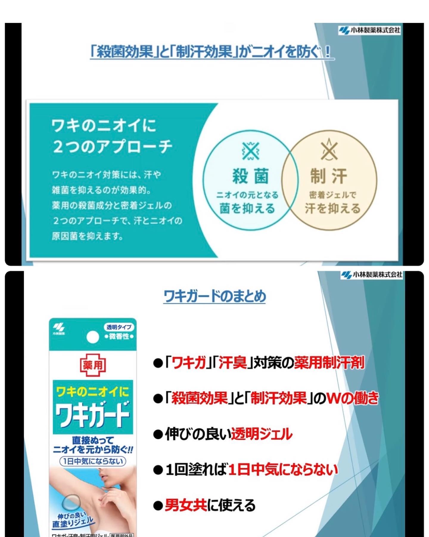 直接塗ってニオイをもとから防いで切れるタイプの制汗用ジェルにになります。 ・殺菌成分がニオイの元となる菌をおさえてくれます ・ニオイを押さえて長時間さわやか ・引き締め成分が汗をおさえてくれます 。透明ジェルなので目立ちません ・微香性 使い方は… わきの下などを清潔にした後、適量塗ります。 塗るだけで汗対策ができるのはラクチンですよね! 汗っかきなのでこれからの時期、本当に手放せなくなる商品です。