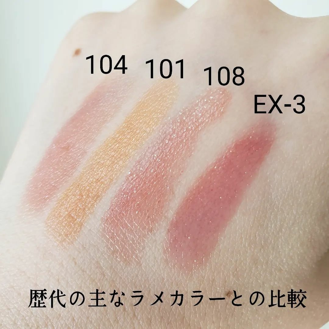 103秘めた炎 みんな狙ってたんじゃないでしょうか。 101 1/365の日の出 【14憧れの日光浴】にラメ足しただけでしょ、 ラメはミニ限定で迷惑な存在ってわかったから買う必要無しって思ってたけど、実際つけたら全然ラメ砂利しないし、ラメが繊細で目立たない。